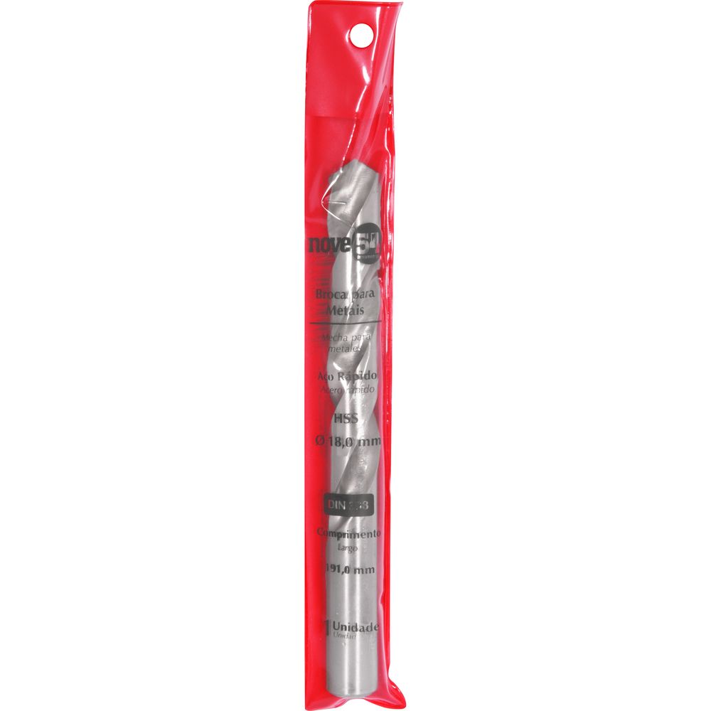 Broca de Aço Rápido 18,0 mm DIN338 Hss Encartelada Nove54