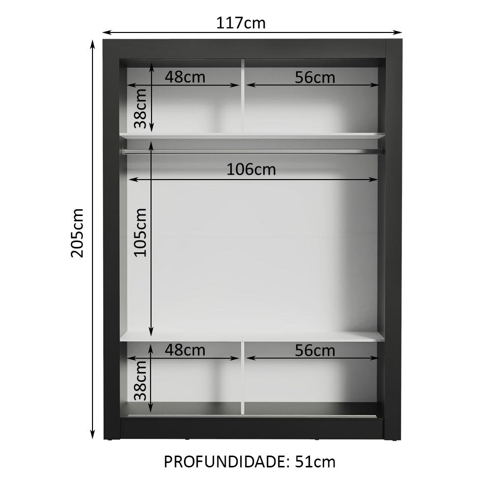 Guarda-Roupa Solteiro Madesa Denver 2 Portas de Correr - Preto/Cinza