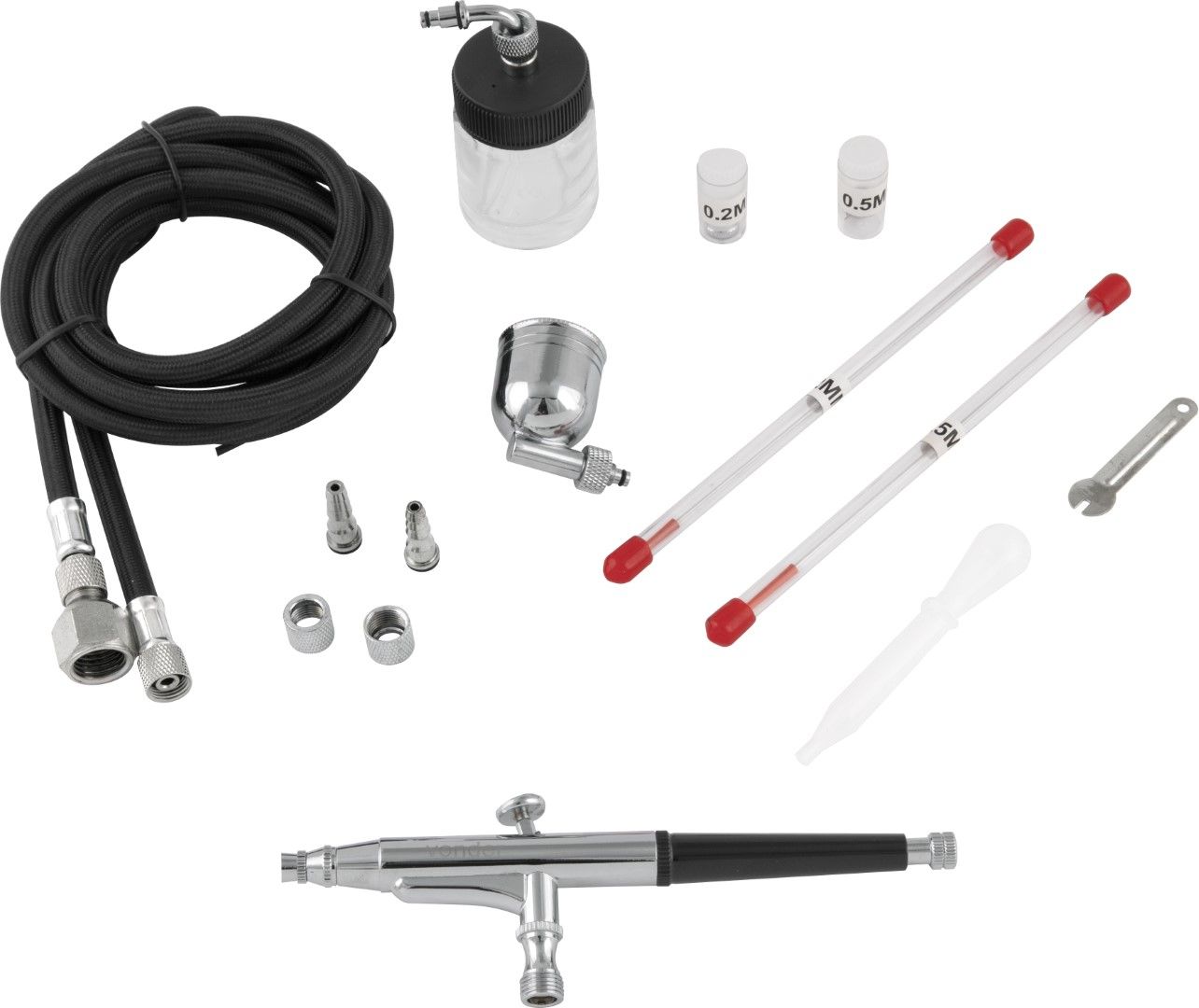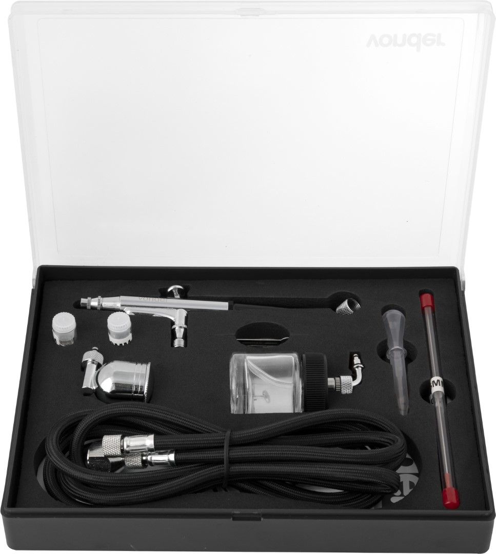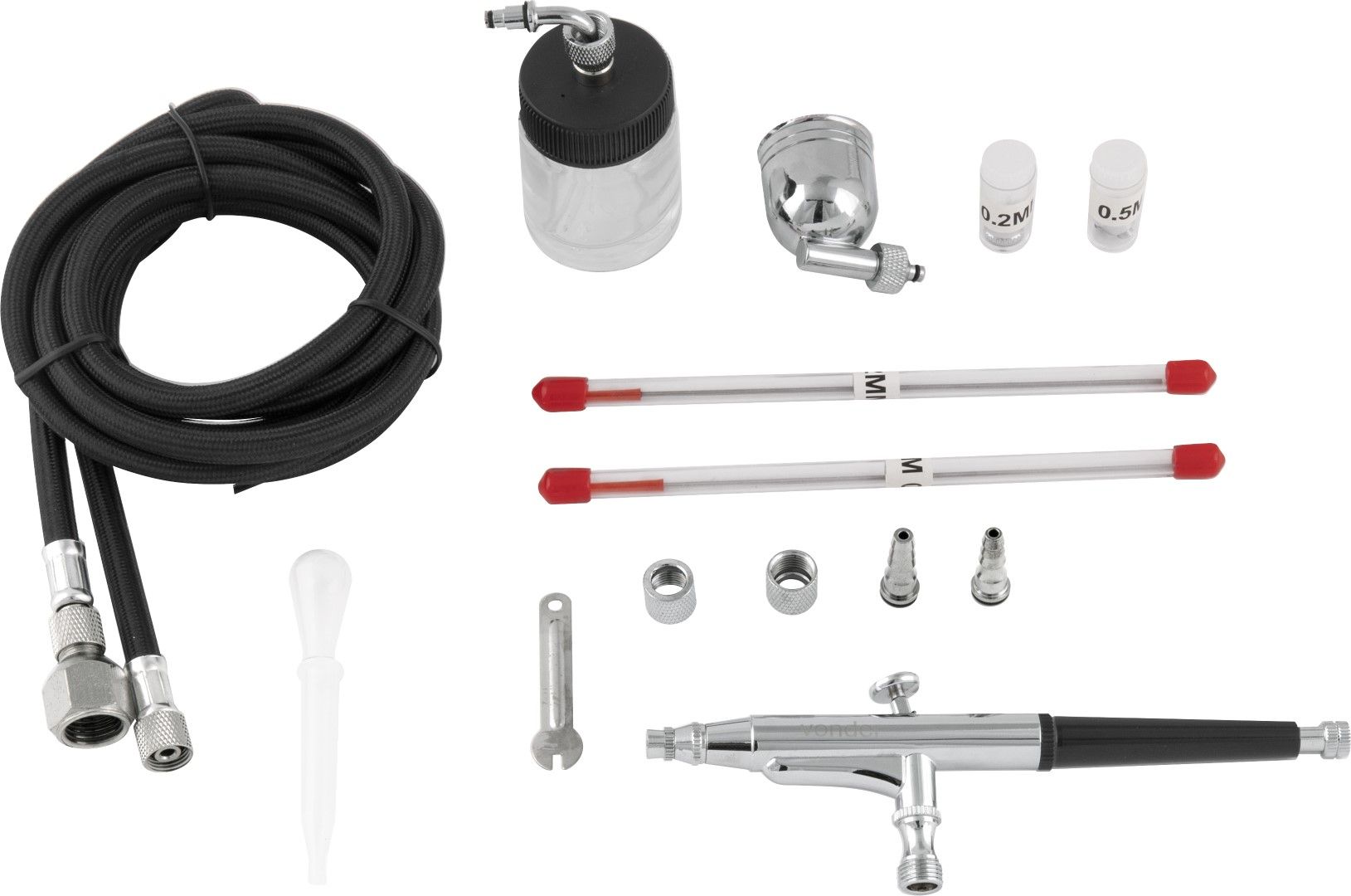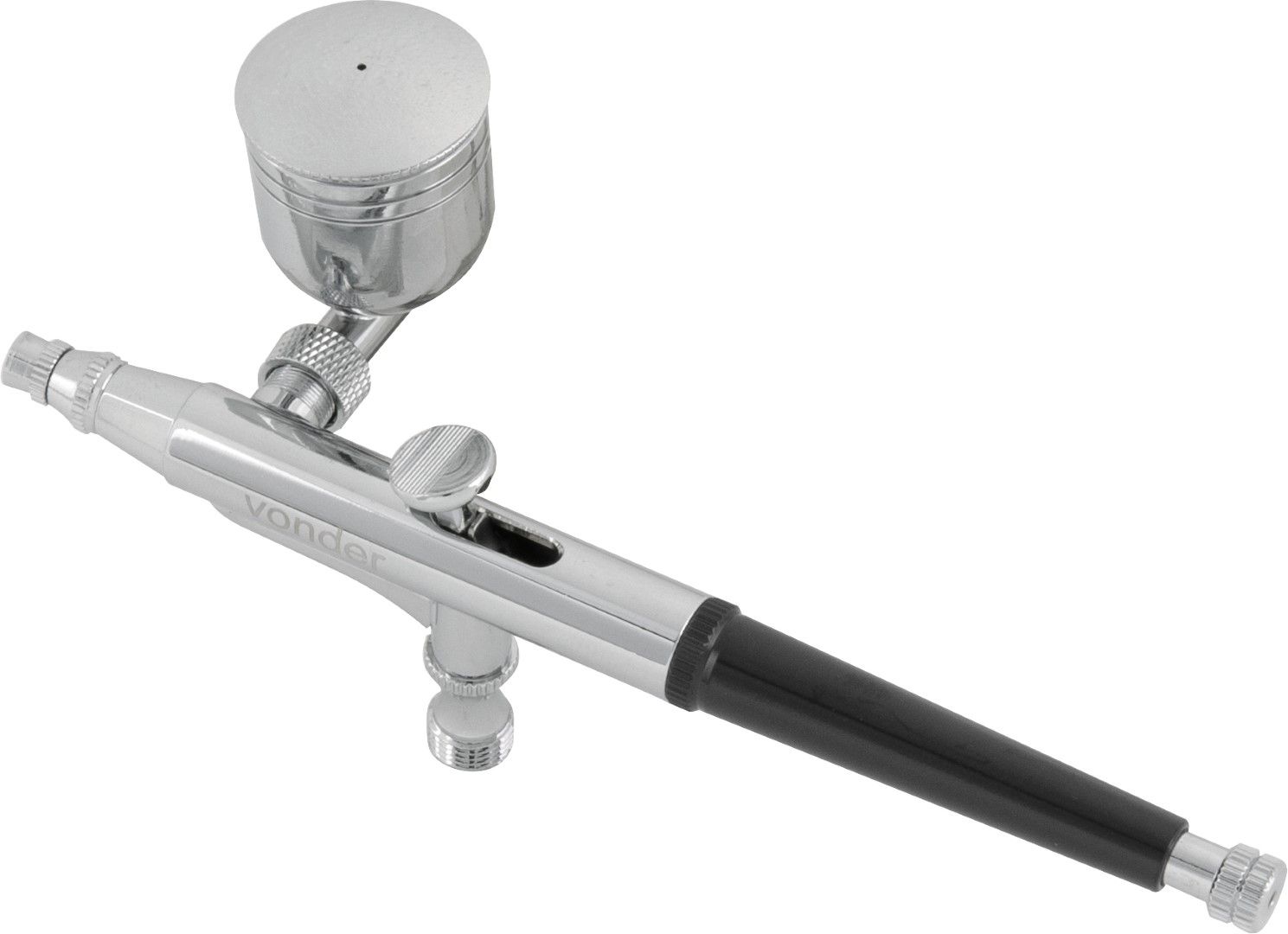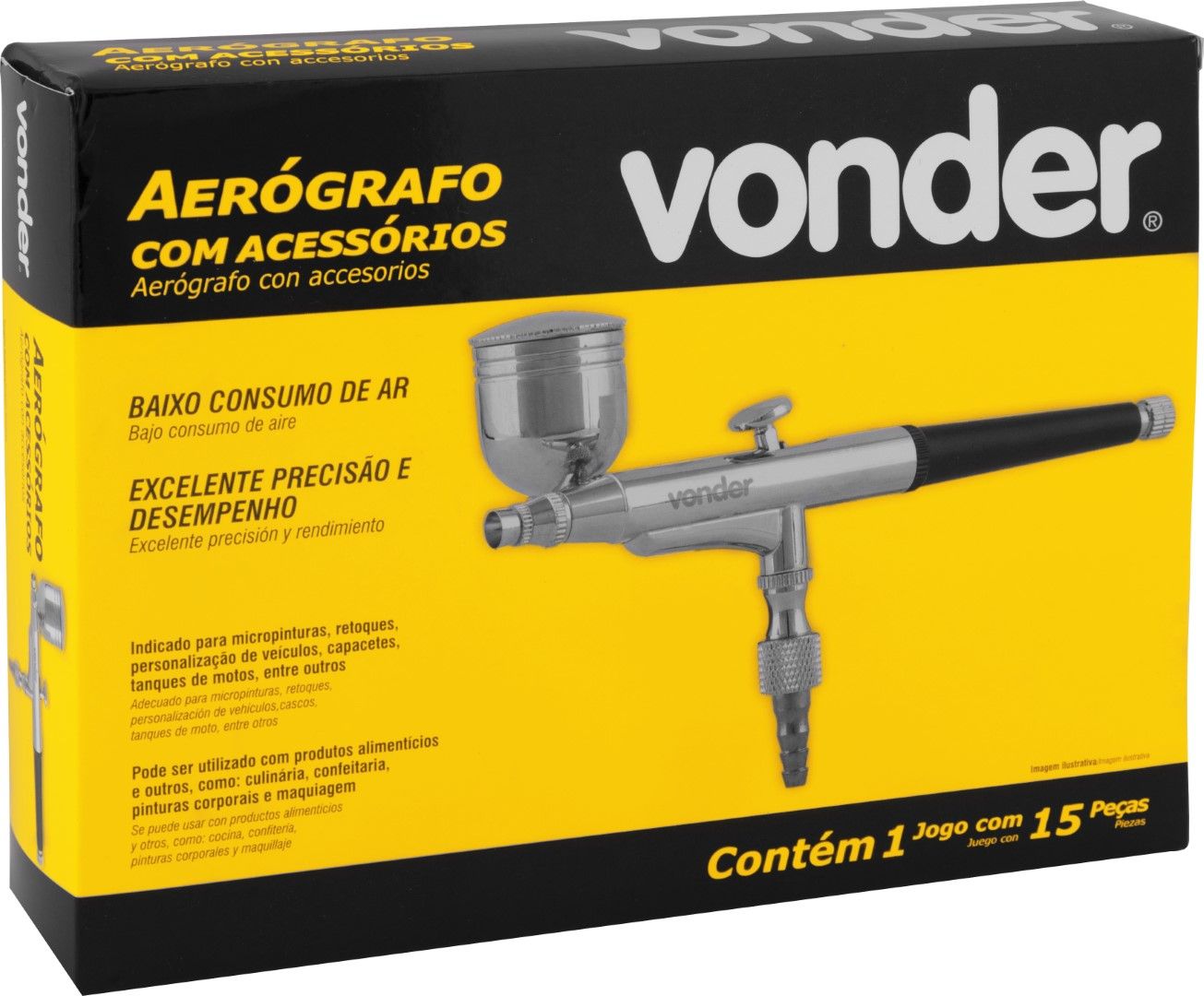 Aumente a precisão e a qualidade dos seus trabalhos com o Aerógrafo Vonder, um equipamento versátil e eficiente, ideal para quem busca excelência em micropinturas, retoques e personalizações. Este aerógrafo é perfeito para artesãos, artistas e profissionais que necessitam de precisão e baixo consumo de ar. Com ele, você pode realizar desde personalizações de veículos e capacetes até aplicações em culinária e confeitaria, além de pinturas corporais e maquiagem. A Vonder é uma marca reconhecida pela qualidade e durabilidade de seus produtos, garantindo que você tenha em mãos um equipamento confiável e de alto desempenho.ESPECIFICAÇÕES TÉCNICAS:- Marca: Vonder- Modelo: 6220015000- Material: Cobre- Pressão de trabalho do aerógrafo: 15 lbf/pol² - 50 lbf/pol²- Rosca de entrada de ar do aerógrafo: 1/8" BSP macho- Capacidade da caneca: 7 ml (metálica) e 22 ml (vidro)- Consumo de ar do aerógrafo: 0,07 pcm (2 L/min)- Código universal de produto: 7893946733926FUNÇÕES E CARACTERÍSTICAS:- Baixo consumo de ar- Alta precisão e desempenho- Versatilidade para diferentes tipos de aplicaçãoINSTRUÇÕES DE USO:1. Conecte o aerógrafo ao compressor utilizando a mangueira inclusa.2. Selecione o bico e a agulha adequados para o tipo de trabalho.3. Ajuste a pressão de trabalho conforme necessário.4. Após o uso, limpe o aerógrafo para garantir sua durabilidade.ITENS INCLUSOS:- 1 Aerógrafo- 3 bicos (0,2 mm, 0,3 mm e 0,5 mm)- 3 agulhas (0,2 mm, 0,3 mm e 0,5 mm)- 1 copo de metal 7 ml- 1 copo de vidro 22 ml- 1 chave- 1 mangueira 1,8 m- 1 conector 1/8" fêmea com espigão 1/4"- 1 tubo de sucção- 2 adaptadores rápidos