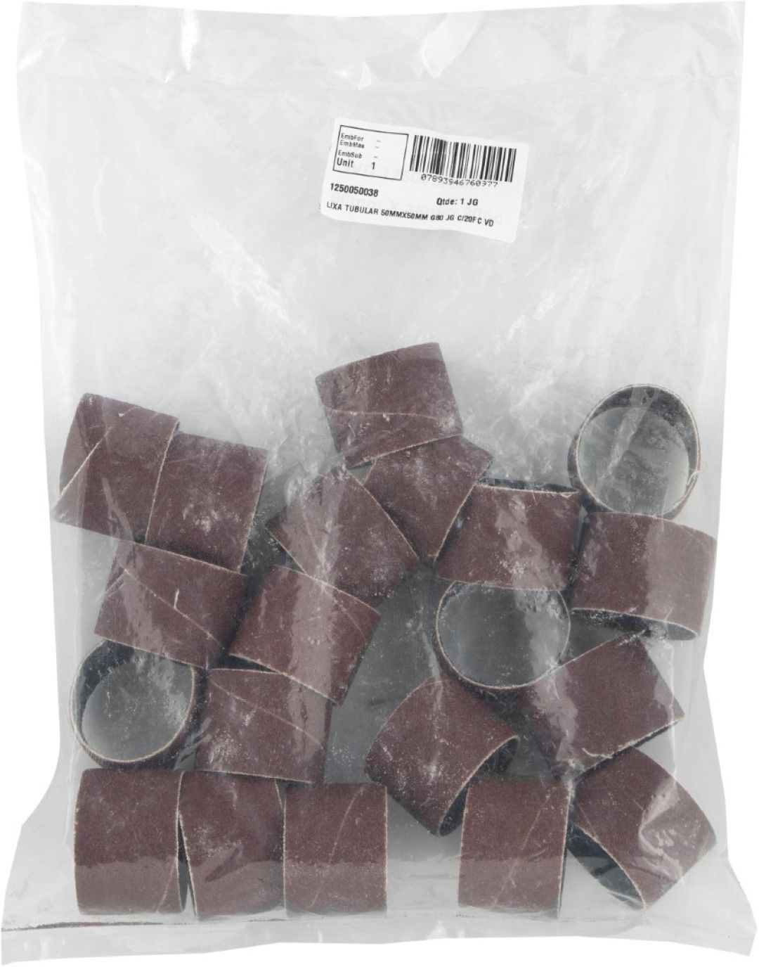 Lixa Tubular 50x50 mm Grão 80 Jogo com 20 peças Vonder