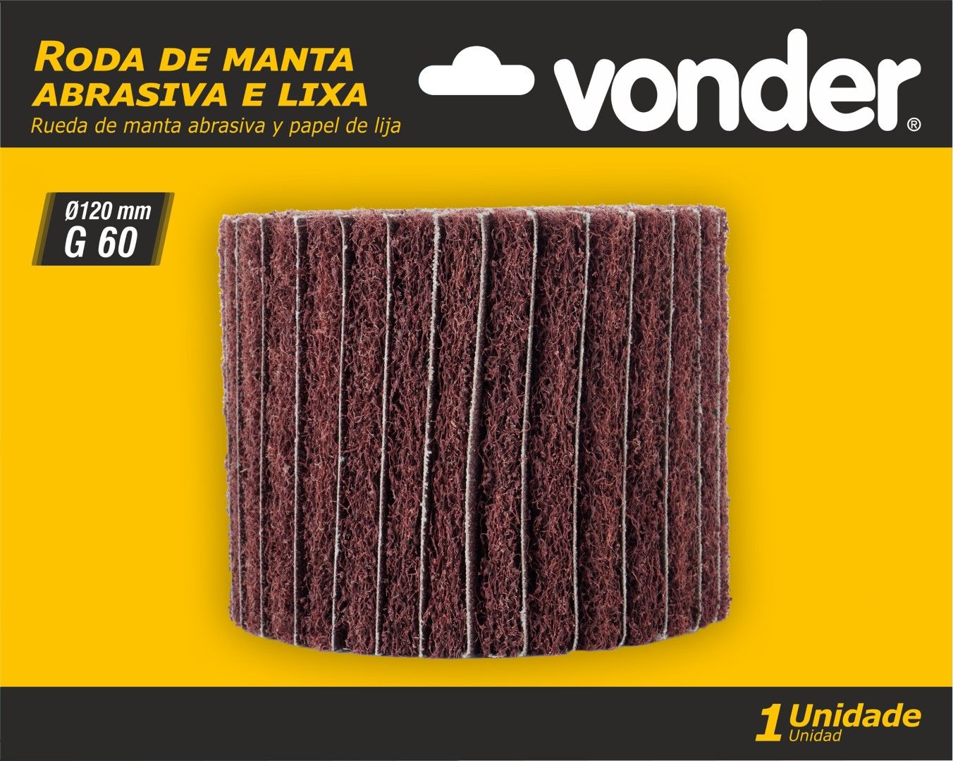 Marca: VonderConteúdo da embalagem: 1 Roda de manta abrasiva e lixa.Destaques e diferenciais:Utilizadas também na remoção de riscos leves e no recondicionamento de superfícies, produzindo um acabamento acetinado em uma só etapa.Dicas de uso:Ideal para remoção e acabamento de superfícies metálicas diversas, principalmente aço inox. Indicada para uso na Politriz Escovadeira PEV 1380 VONDER.Detalhes Técnicos:Diâmetro externo da roda abrasiva: 120,0 mm Largura da roda abrasiva: 100,0 mm Diâmetro do furo da roda de lixa: 19,0 mm Tipo de grão abrasivo: Carbeto de silício Grão: G 60 Rotação máxima: 3.800/min