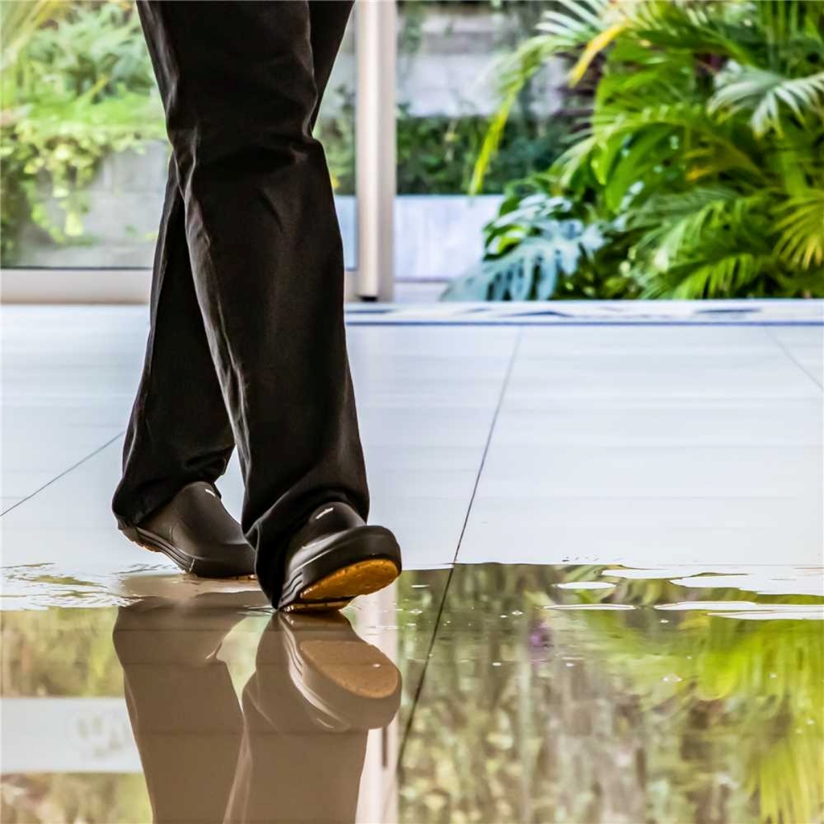 Marca: VonderConteúdo da embalagem:1 Par de sapatos.Garantia: Garantia legal: 90 diasDestaques e diferenciais:Sapato fechado na parte do calcanhar e na parte superior. Confeccionado em material polimérico e impermeável. Conta com absorvedor de energia na área do salto, palmilha interna, solado de borracha antiderrapante resistente ao óleo combustível, ao escorregamento em piso cerâmico com solução de detergente e piso de aço com solução de glicerol.Aplicações e dicas de uso:Indicado para a proteção dos pés do usuário contra riscos de natureza leve, agentes abrasivos e escoriantes e umidade proveniente de operações com uso de água. Não utilizar o sapato em operações contra incêndio e contra agentes provenientes de energia elétrica.Detalhes Técnicos:Modelo: Sapato impermeável Classic Material (tipo/composição): Polimérico (TPE) Número do sapato de segurança: N° 34 Material do solado do sapato de segurança: Borracha natural Tipo de solado: Antiderrapante Biqueira: Sem Fechamento: Total Acabamento interno (forração/forro) (tipo/composição): Sem forro Cor: Preto com solado bege Certificado de aprovação (CA): 44885 Massa aproximada (peso) (kg): 0.53 kg