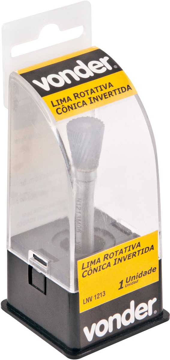 Marca: VonderConteúdo da embalagem:1 Lima rotativa.Destaques e diferenciais:Oferece conforto e maior segurança ao operador, reduz o esforço sobre o equipamento, alta produtividade. Ponta de vídea/metal duro proporcionando maior vida útil.Aplicações e dicas de uso:Utilizada em retificadeira para desbaste e acabamento em metais, como: cordão de solda, rebarbações em geral e demais operações que necessitam a remoção de material. Não indicada para desbaste de aço inox.Detalhes TécnicosModelo: N/A Formato da lima: Cônica invertida Diâmetro: 16,0 mm Comprimento útil: 6,0 mm Diâmetro da haste: 6,0 mm Comprimento total: 50,0 mm Rotação máxima: 20.000/min Garantia - E (CDC):Garantia legal: 90 dias