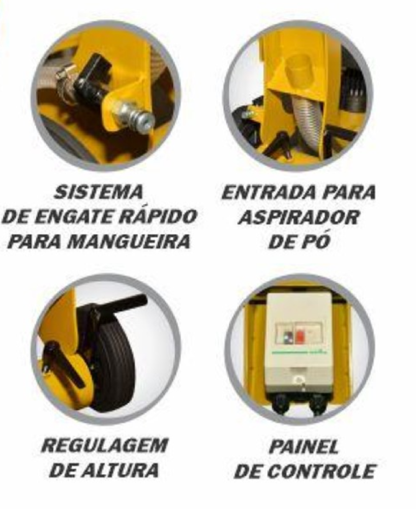 A Buffalo Desenvolveu Seus Produtos Robustos E Resistentes Para Suportar O Trabalho Pesado Que A Construção Civil Exige. A Politriz Bf 2800 É Ideal Para Remoção De Pinturas, Revestimentos, Colas E Adesivos Do Piso E Asfalto É Ideal Também Para O Polimento De Concreto, Granito, Marmore, Paralelepipedo E Muitas Outras. Possui Entrada Para Aspirador De Pó Industrial, Regulagem De Altura, Sistema De Engate Rápido Para Mangueira E Um Painel De Controle De Facil Manutenção. É Recomendável Extensão Com Fio De No Máximo 30 Metros. Esse É Um Equipamento Elétrico Com Tensão De 230V Monofásico. A Politriz Bf 2800 Não Acompanha Os Abrasivos. ódigo:80360 Tipo:Elétrico Monofásico - 4 Polos Potência Nominal (Cv)(KW/Rpm):3,0 (2,2/1735) Tensão Nominal (V) X Frequência (Hz):230 X 60 Corrente Nominal (A):13,0 Capacitor Partida (ɥF/V):300 / 250 Capacitor Permanente (ɥF/V):60 / 450 Grau de Proteção :IP 56 Largura de Retificação (pol):10" Quantidade de Abrasivos:6 (Não Inclusos no Equipamento) Pressão de Retificação (lbs/kg):77,0 / 34,9 Pressão Sonora (dBA):89,0 Nível de Vibração (m/s²):3,4