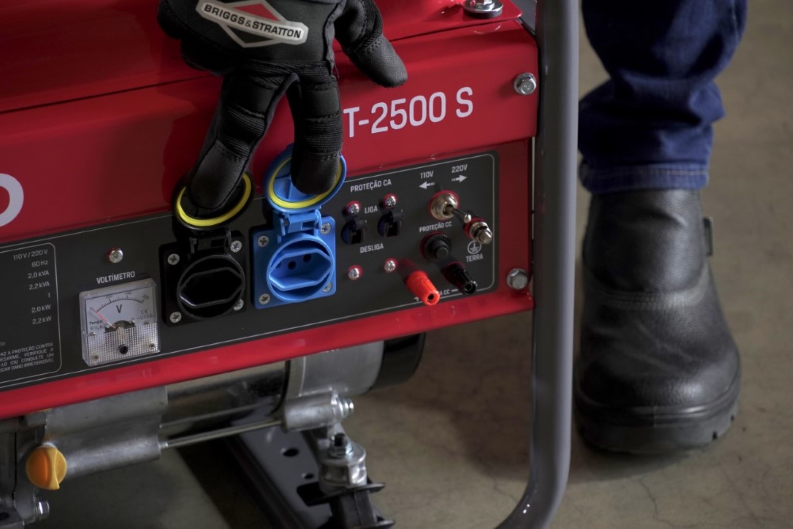 Motor: 6,5Avanço: partida manualPotência máxima: 2,2Potência contínua: 2,0Tensão de saída Principal: 110 V 220 V (com voltímetro e chave seletora de tensão)Controle de tensão: AVR/com escovaCarregador de bateria: 12 V; 8,3 ACapacidade do tanque: 15Autonomia (50% de carga): 15Fases: MonofásicoFio (mm): 2,5Ruído (7 m): 68Dimensões do produto (CxLxA) (mm): 550 x 420 x 450Peso: 45