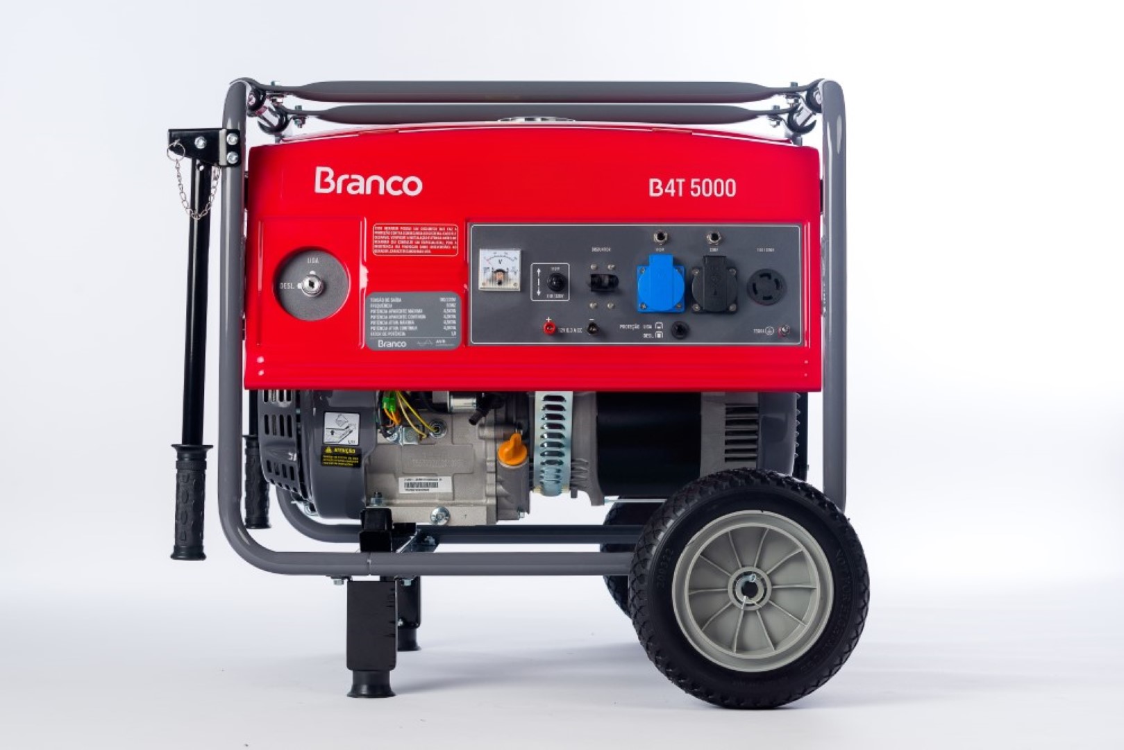 Motor: 11,0Avanço: partida manualPotência máxima: 4,5Potência contínua: 4,0Tensão de saída Principal: 110 V 220 V (com voltímetro e chave seletora de tensão)Controle de tensão: AVR/com escovaCarregador de bateria: 12 V; 8,3 ACapacidade do tanque: 25Autonomia (50% de carga): 10Fases: MonofásicoFio (mm): 4,0Ruído (7 m): 74Dimensões do produto (CxLxA) (mm): 640 x 520 x 520Peso: 78
