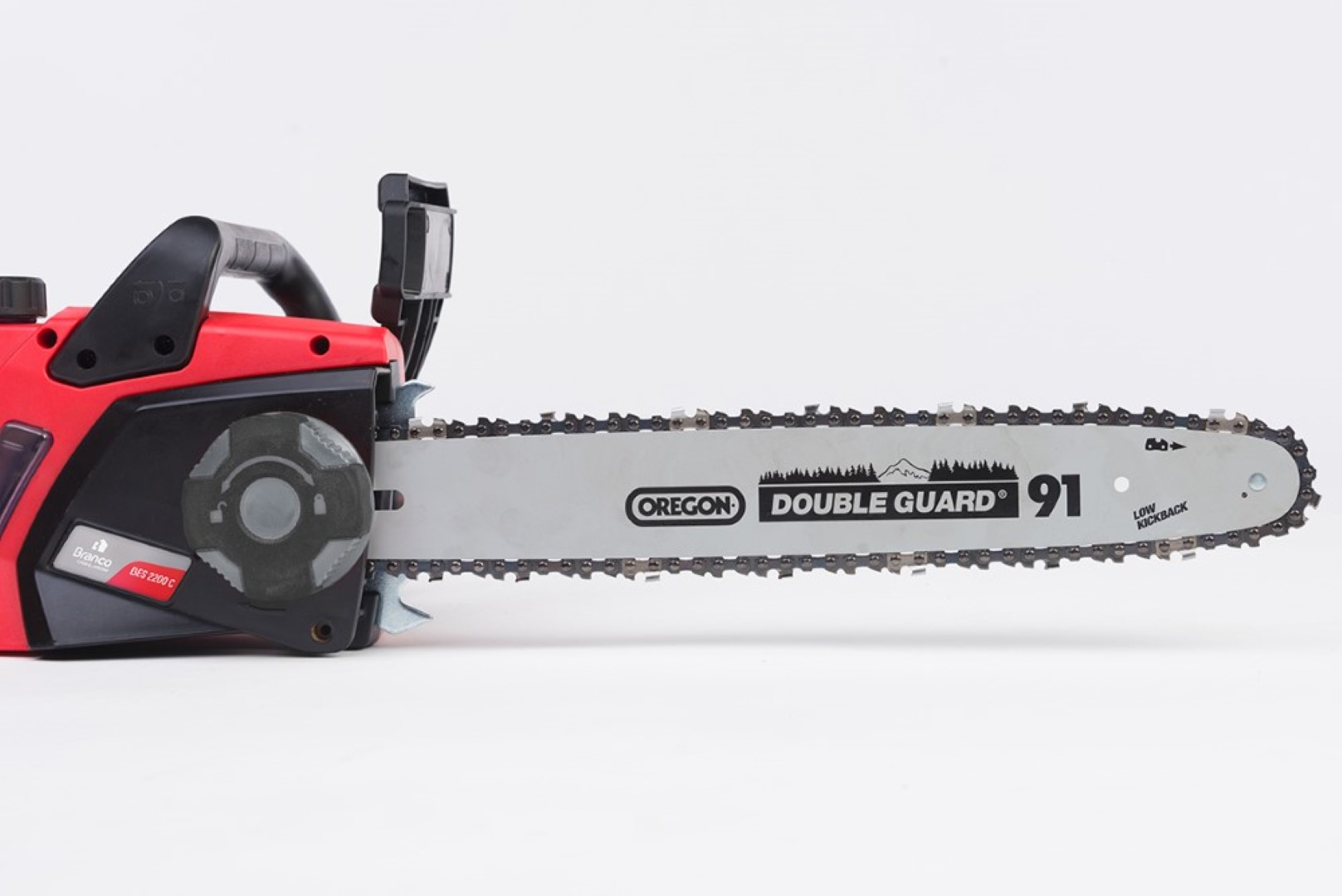Seu sistema de partida suave oferece um maior controle da velocidade. Partida suaveConjunto de corte Oregon®Velocidade da corrente de até 15 m/sTensionador rápido ergonômico e emborrachadoDADOS TÉCNICOS - ELETROSSERRAVelocidade máx. da corrente 14 m/s (127V)Rotação máxima 7500 rpm (127V)Corrente Oregon®Passo / Calibre 3/8" x .050"Sabre Oregon®Comprimento do sabre 16"Ponta do sabre RolanteNº de dentes do pinhão 6Reservatório de óleo 150 mlComp. Cabo elétrico 0,23 mRuído (Lwa) 106 dBAAjuste de corrente Tensionador Rápido DADOS TÉCNICOS - MOTORIZAÇÃOMotor: ElétricoTipo do motor: UniversalPotência: 2200 WFrequência: 60Hz DADOS LOGÍSTICOSDimensão (Produto sem sabre) CxLxA: 400 x 210 x 420 mmDIFERENCIAIS- Partida suave- Tensionador emborrachado- Conjunto de corte Oregon®- Ótima relação peso x potência ACESSÓRIOS- Kit manuais- Capa do sabre
