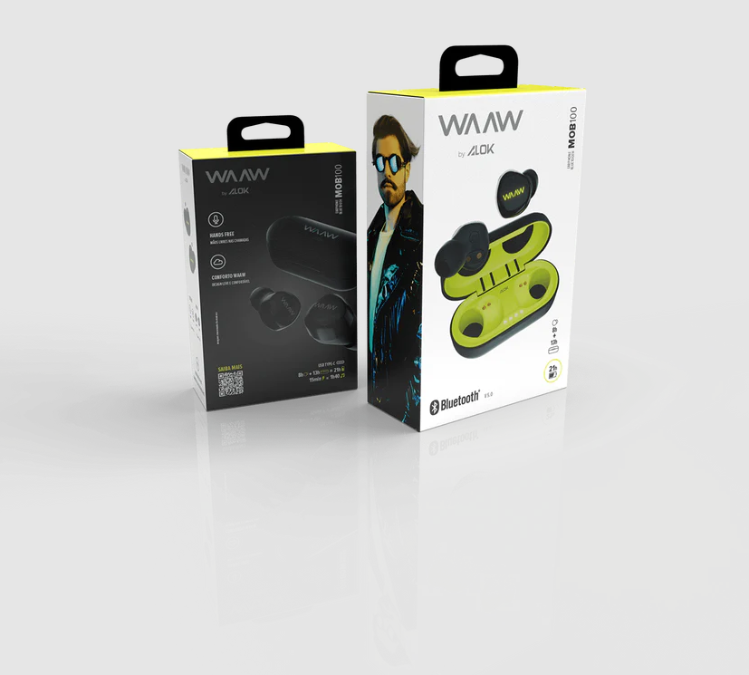 Onde estiver, leve a música com você. A qualidade de áudio que você precisa com design ergonômico para uma melhor experiência. O fone de ouvido Bluetooth WAAW MOB 100EB é ideal para levar onde quiser, oferecendo a mobilidade para que ouça músicas e atenda chamadas com liberdade e conforto. Com o total de 21 horas de música sem parar, reproduza seus áudios sem preocupação, através das 8 horas de bateria do fone de ouvido bluetooth, mais 13 horas de carga do estojo. Com a WAAW Plus tecnologia TWS, você tem o verdadeiro som estéreo HD com detalhes claros e ricos, garantem a qualidade de som premium e proporcionam uma música perfeita. Com isso, você tem um fone de ouvido bluetooth TWS com chamadas claras e microfone aprimorado de alta qualidade. Além disso, a tecnologia bluetooth 5.0 proporciona mais agilidade na conexão e compatibilidade entre dispositivos sem a necessidade de cabos ou fios conectando os aparelhos. Para trazer facilidade durante o uso, conta com controle de toque inteligente, ideal para atender chamadas, reproduzir, pausar, avançar ou voltar músicas, além de acionar assistente de voz. Com HandsFree, o fone de ouvido sem fio MOB 100EB combinado com driver de 6mm e a tecnologia Bluetooth 5.0, oferece som de alta qualidade para ouvir e conversar durante chamadas em viva-voz. Sobre o item:21 horas de reprodução;HandsFree chamadas em viva-voz;WAAW PLUS btecnologia TWS;Conforto WAAW design inteligente;Controle de toque inteligente;Som de balta qualidade. Modelo WAAW MOB 100EBTipo de conexão do cabo de carregamento USB-CDesligamento Automático: Sim (em modo de conexão)Cor Preto e VerdePerfis bluetooth HSP / HFP / AVRCP / A2DPAutonomia da bateria do estojo (h) 13hTamanho do driver (mm) 6mmVersão do Bluetooth 5.0Autonomia da bateria dos fones (h) 8hBateria (mAh) 55 mAh (Fones) 300 mAh (Case)Potência de Saída (mW) (RMS) 3mWImpedância do Speaker (ohms) 16 ohmsAcessórios 3 Tamanhos de borrachinhas auriculares (P, M, G) + Cabo USB-CResposta de Frequência (Hz) 20Hz – 20kHzDimensões do produto C x L x A (cm) 1,9 x 2,3 x 2,6 cm (fone) 6,5 x 2,9 x 3,0 cm (case)Tempo de carregamento (h) 1h 20 min (fone na case) // 1he 10 min (case)Autonomia após 15 min de carga 1h e 40minCertificado ANATEL 17068-21-12143Tempo de reprodução de música (h) 21h Total Tempo de autonomia de reprodução depende do tipo de música e volume.Alcance máximo (m) 10m O alcance máximo do Bluetooth depende de um ambiente sem obstruções para funcionar dentro do raio indicado.Sensibilidade do Driver a 1kHz1mW (dB) 91.5dB +/- 3dBGarantia 01 ANO (3 meses de garantia legal e mais 9 meses de garantia especial concedida pelo fabricante)Peso líquido (g) 34g (case e fone) 10g (fones)Estojo para transporte: SimControle sensível ao toque: SimMicrofone integrado: SimCompativel com assistente de voz: SimCancelamento Ativo de Ruído: NãoControle com botões: NãoReprodução automática / pause: NãoConectividade APP: NãoPeso Bruto da Embalagem (g) 80gDimensões da Embalagem C x L x A (cm) 8 x 3,7 x 12,6 cmCubagem da Embalagem (m³) 0,00037296 m³