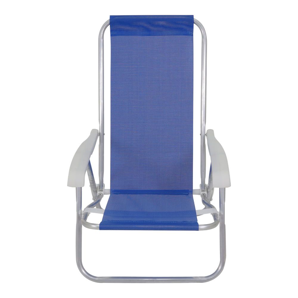 Cadeira Reclinável Lazy · Tela 100% Poliéster com revestimento em PVC· Estrutura em Alumínio· Apoios de braço em Polipropileno· Dobrável· Reclinável em 4 diferentes Posições· Leve e fácil de transportar· Mais praticidade e confortoEspecificações técnicasPeso Suportado da Cadeira: 100 KgMedidas da Cadeira: 66 cm x 54 cm x 85 cmAltura do Assento: 26 cmReclinável: SimEstrutura: AlumínioApoio para os Braços: SimDobrável: SimCor: AzulGarantia: 3 MesesMaterial: Poliéster, PVC, Alumínio e Polipropileno