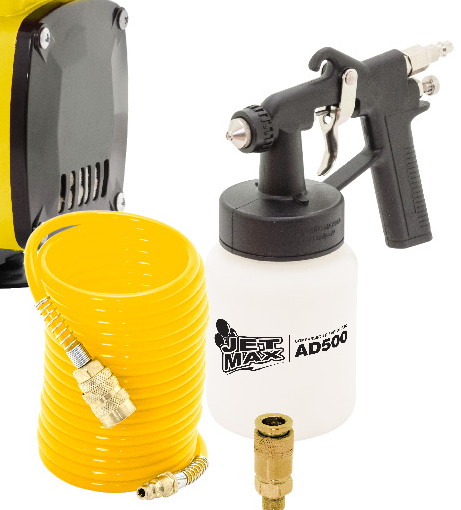 COMPRESSOR AR DIRETO JETMAX AD500 360W - 127/220V TIPO: Compressor de ar direto TENSÃO: 127/220V POTÊNCIA: 360W VAZÃO / DESLOCAMENTO TEÓRICO: 128~135 L/min / 4,2~4,77 pcm PRESSÃO MÁXIMA DE OPERAÇÃO: 3,5 bar (50 psi) SAÍDAS: 1/4" - Com engate rápido DIMENSÕES: 465x175x260 mm PESO LÍQUIDO 8,5 kg ACOMPANHAM: 1 Pistola para pintura com capacidade de 600ml, 1 mangueira de 5 metros 1 Conector com engate rápido