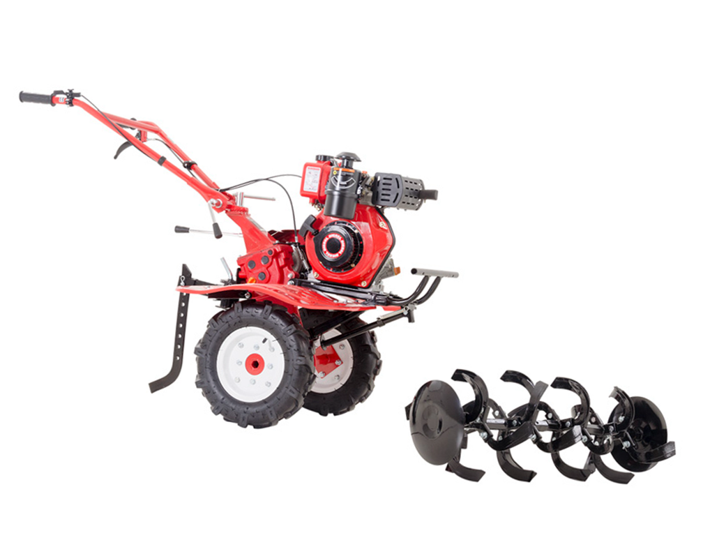 MICROTRATOR KAWASHIMA MCD 580 DIESEL 4,2 HP TIPO: Microtrator a diesel MARCHAS: 2 frente / 1 Ré QUANTIDADE DE LÂMINAS: 24 (7X3 com disco lateral) DIÂMETRO DAS LÂMINAS: 350 mm SISTEMA DE TRANSMISSÃO: Correias e corrente LARGURA DE ARAÇÃO: 1000 mm PROFUNDIDADE DE ARAÇÃO: 145 à 175 mm VELOCIDADE FRENTE: 8,22 / 10,25 km/h VELOCIDADE RÉ: 5,62 km/h SISTEMA DE EMBREAGEM: Tensionada PNEUS: 4.00X8 ÓLEO DA CAIXA DE TRANSMISSÃO: SAE 70W-90 TIPO DO MOTOR: Monocilíndrico, 4T, refrigerado a ar POTÊNCIA MÁXIMA: 4,2 HP SISTEMA DE PARTIDA: Manual, autorretrátil FILTRO DE AR: Banhado a óleo CAPACIDADE DO TANQUE DE COMBUSTÍVEL: 2,5 L ÓLEO DO MOTOR: SAE 15W-40 DIMENSÕES DO EQUIPAMENTO: 1640x610x880 mm PESO LÍQUIDO: 96,8 kg