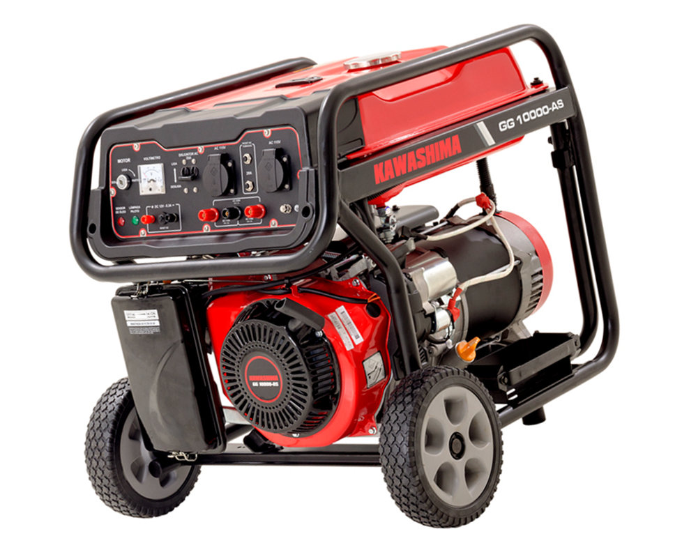 GERADOR KAWASHIMA GG 10000-AS MONO BIVOLT TIPO: Gerador a gasolina, Monofásico POTÊNCIA MÁXIMA: 9000 W POTÊNCIA NOMINAL: 8200 W TENSÃO: Bivolt 115 / 230v FREQUÊNCIA: 60 Hz CARREGADOR DE BATERIA: Sim REGULADOR DE TENSÃO (AVR): Sim VOLTÍMETRO: Sim CONSUMO DE COMBUSTÍVEL: 375 g/kwh MOTOR: Kawashima TIPO DO MOTOR: Monocilindros, horizontal, gasolina, 4T, refrigerado a ar POTÊNCIA MÁXIMA DO MOTOR: 16 HP SISTEMA DE PARTIDA: Elétrico (12V - 17A) e manual CAPACIDADE DO TANQUE DE COMBUSTÍVEL: 25 L NÍVEL DE RUÍDO: 98 db (A) DIMENSÕES: 700x526x580 mm PESO LÍQUIDO: 94 kg OBSERVAÇÃO: Não acompanha bateria