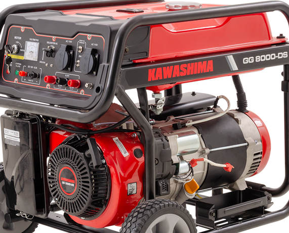 GERADOR KAWASHIMA GG 8000-DS MONO BIVOLT TIPO: Gerador a gasolina, monofásico POTÊNCIA MÁXIMA: 8000 W POTÊNCIA NOMINAL: 7000 W TENSÃO: Bivolt 115/230V FREQUÊNCIA: 60 Hz CARREGADOR DE BATERIA: Sim REGULADOR DE TENSÃO (AVR): Sim VOLTÍMETRO: Sim CONSUMO DE COMBUSTÍVEL: 374 g/kwh MOTOR: Kawashima TIPO DO MOTOR: Monocilíndrico, horizontal, gasolina, 4T, refrigerado a ar POTÊNCIA MÁXIMA DO MOTOR: 13 HP SISTEMA DE PARTIDA: Manual e elétrico (12V - 17A) CAPACIDADE DO TANQUE DE COMBUSTÍVEL: 25 L NÍVEL DE RUÍDO: 98 db (A) DIMENSÕES: 700x526x580 mm PESO LÍQUIDO: 88 kg OBSERVAÇÕES: Não acompanha bateria