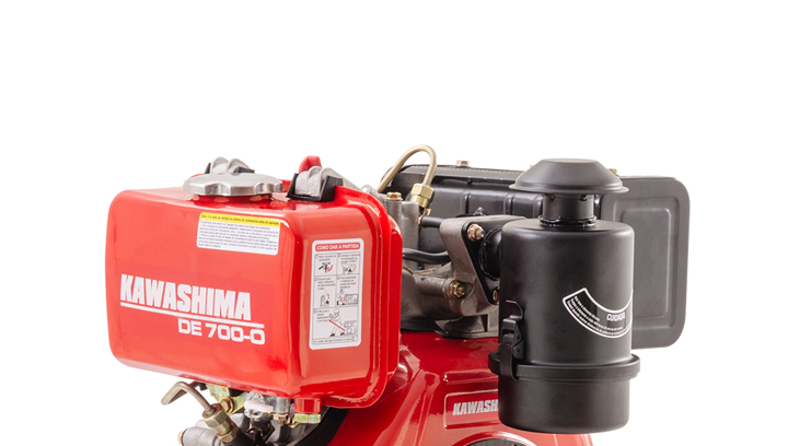 MOTOR ESTACIONÁRIOKAWASHIMA DE 700-O 7HP DIESEL FILTRO DE AR BANHADO A ÓLEO TIPO: Monocilíndrico, 4T, horizontal, refrigerado a ar, diesel SISTEMA DE REFRIGERAÇÃO: Refrigerado a ar DIÂMETRO X CURSO: 78 X 62 mm CILINDRADA: 296cc POTÊNCIA MÁXIMA: 7 HP TAXA DE COMPRESSÃO: 20:1 ROTAÇÃO MÁXIMA: 3600rpm TORQUE MÁXIMO: 1,39 N.m 2880rpm EIXO: 25,4mm, chavetado REDUTOR DE ROTAÇÃO: Não FILTRO DE AR: Banhado a óleo SISTEMA DE PARTIDA: manual, autorretrátil ÓLEO DE LUBRIFICAÇÃO: SAE 20W-40 CAPACIDADE DO CÁRTER: 1,10L CAPACIDADE DO TANQUE DE COMBUSTÍVEL: 3,5 L CONSUMO MÁXIMO DE COMBUSTÍVEL: 280g/kw/h DIMENSÕES: 383X431X460mm PESO LÍQUIDO: 33kg