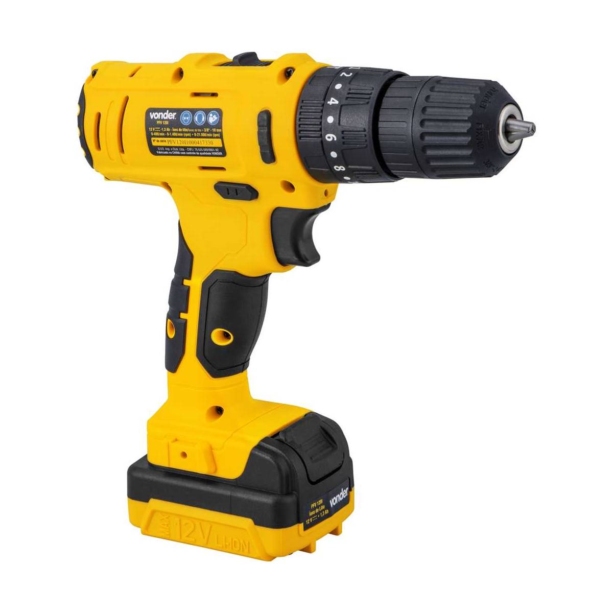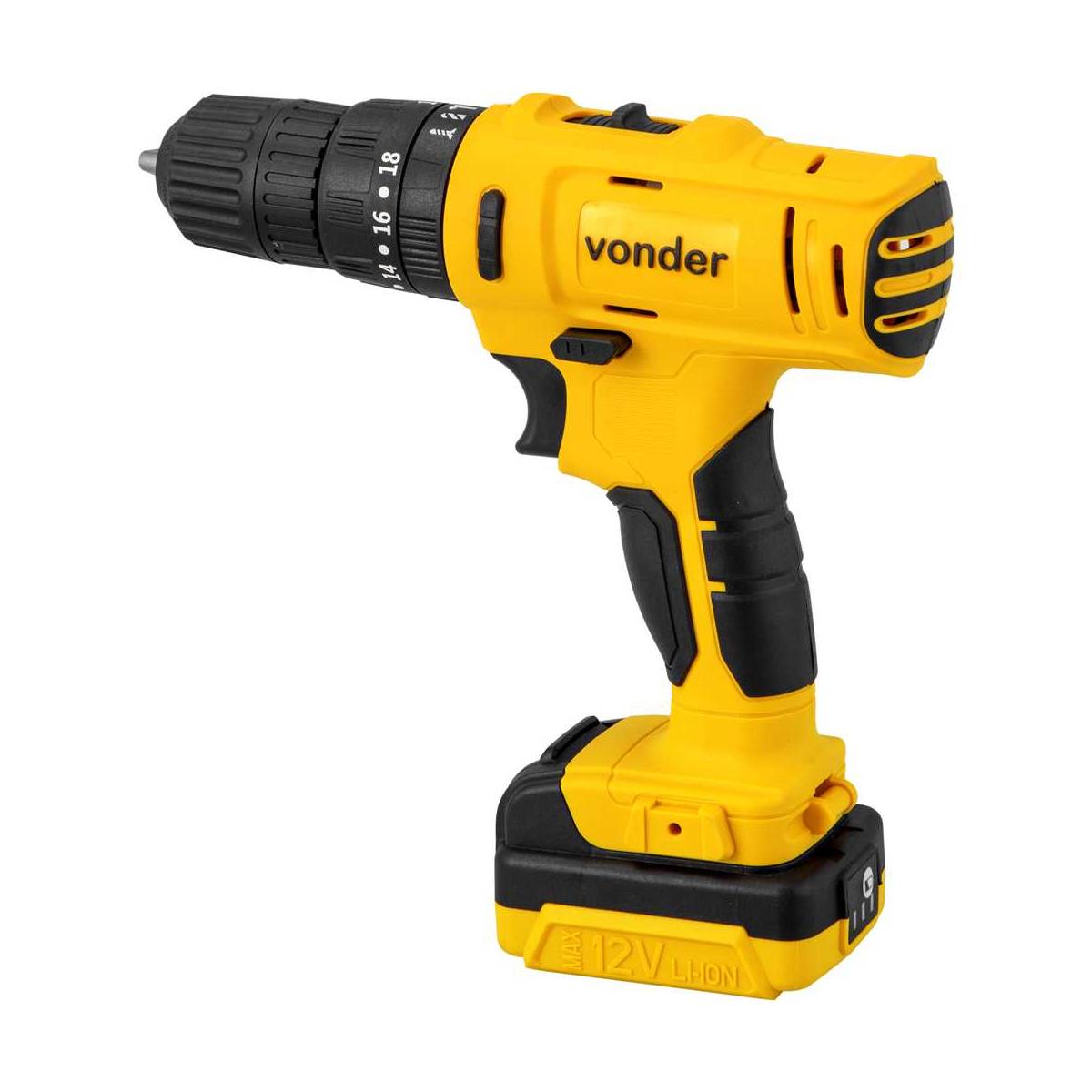 Parafusadeira/Furadeira Bateria 12V PFV120I com Impacto Vonder A Parafusadeira/Furadeira Vonder PFV120I é a ferramenta ideal para quem busca eficiência e praticidade em seus projetos de bricolagem e reparos domésticos. Com um design compacto e ergonômico, ela oferece conforto e facilidade de uso, graças ao cabo emborrachado e à luz LED que melhora a visibilidade do local de trabalho. A bateria de íons de lítio de 12V garante alta eficiência e durabilidade, permitindo que você trabalhe por mais tempo sem interrupções. Além disso, a fonte de alimentação bivolt automático facilita o carregamento em qualquer lugar. Com 18 posições de torque e velocidade variável, esta ferramenta é versátil e pode ser utilizada em diversas aplicações, desde apertar e soltar parafusos até perfurar madeira, metal e alvenaria. A função percutora adiciona ainda mais potência para trabalhos em concreto. A maleta de transporte mantém todos os acessórios organizados e prontos para uso, aumentando a vida útil do produto. ESPECIFICAÇÕES TÉCNICAS:- Marca: Vonder- Modelo: PFV120I- Tipo de parafusadeira elétrica: Compacta- Bateria: 12V - 1,3 Ah - Íons de lítio- Tempo de carga da bateria: 3 horas- Velocidade de rotação: 400 a 1400 rpm- Torque máximo: 20 Nm- Impactos por minuto: 21.000 ipm- Capacidade de perfuração: Madeira 16 mm, Metal 10 mm, Concreto 10 mm- Tipo de mandril: Aperto rápido 3/8" (10 mm)- Peso: 1 kg- Dimensões: Altura 28 cm, Largura 32 cm- Voltagem: 110V/220V- Frequência: 50 Hz/60 Hz- Com luz LED: Sim- Sistema de reversão: Sim- Controle de torque: Sim- Velocidade variável: Sim ITENS INCLUSOS:- 1 Parafusadeira/Furadeira- 1 Maleta plástica- 1 Bateria 12V - 1,3 Ah- 1 Fonte de alimentação- 6 Brocas (1,5 mm, 2,5 mm, 3 mm, 4 mm, 5 mm, 6 mm)- 6 Bits (fenda 5 mm e 6 mm, PZ1, PZ2, PH1, PH2)- 1 Prolongador 60 mm GARANTIA:A Vonder oferece uma garantia legal de 90 dias, além de uma garantia contratual de 9 meses. Para locadoras, a garantia é única e exclusiva de 90 dias. Isso proporciona segurança e suporte pós-venda para você. Para garantir o melhor desempenho da sua parafusadeira/furadeira, siga as instruções de uso e manutenção. Troque as brocas e bits conforme necessário e mantenha a ferramenta limpa e bem armazenada.
