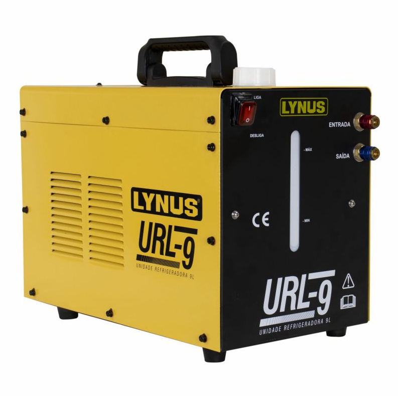A LYNUS apresenta seu novo Equipamentos da linha solda, a URL-9 Unidade Refrigeradora Lynus 9L, um equipamento de alta qualidade e durabilidade, pequeno no tamanho mais gigante na eficiência. •Unidade de Refrigeração para tochas de solda de 9 litros;•Com alta capacidade de refrigeração, garante um excelente ciclo de trabalho da sua Tocha deSolda, garantindo maior produtividade e segurança;•Compatível com qualquer tipo de tocha, com entrada para refrigeração;•Capacidade de armazenamento Líquido de Arrefecimento 9 litros•Ventilação Turbo;•Sistema anticorrosão;•Motor elétrico reforçado;•Bomba pressurizadora;•Possibilita fácil drenagem do líquido;•Baixa Manutenção com longa vida útil. Dados Técnicos:Cód. Produto: 14349.4Tensão: 220VSecção do cabo de alimentação: 3 x 2,5mm²Vazão: 10 litros/min.Capacidade: 9 litrosDimensões: 550x340x420mm.Peso líquido: 15 kgf