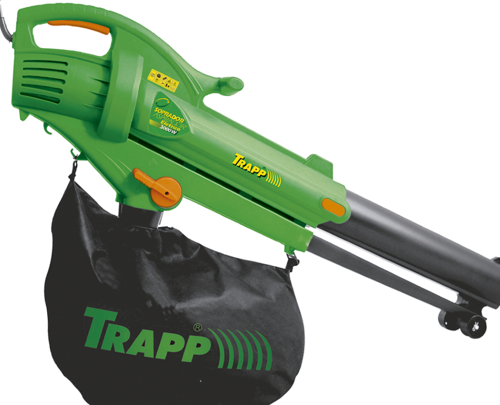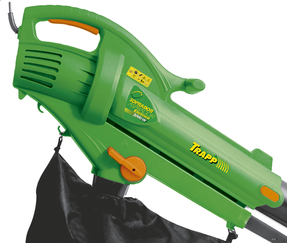 CARACTERÍSTICAS E DIFERENCIAIS Conheça detalhes que garantem um melhor desempenho, mais eficiência e versatilidade do soprador/aspirador TRAPP.Possui sistema de segurança que permite ligar o equipamento somente com o tubo telescópico totalmente encaixado.Trava para extensão elétrica.Alavanca reversora.Rodas para apoiar o equipamento no solo.Suporte para os ombros.Saco recolhedor de 32 litros.Fácil limpeza do saco de detritos.Motor de escovas.Garantia: 6 meses (3 meses garantia legal, 3 meses garantia especial TRAPP).Atenção: Não aspirar resíduos sólidos, como pedras, vidros, ossos, pó, etc. FICHA TÉCNICA Potência (W): 3.000Tensão: 220/230VTipo: MonoCapacidade do Saco de Detritos: 32 litrosRazão de Fragmentação: 10: 1Velocidade do Ar: 270 km/hPeso líquido (kg): 4,630Nível de Pressão Sonora: 76,8 dB(A)Vibração: 1,329 mm/s