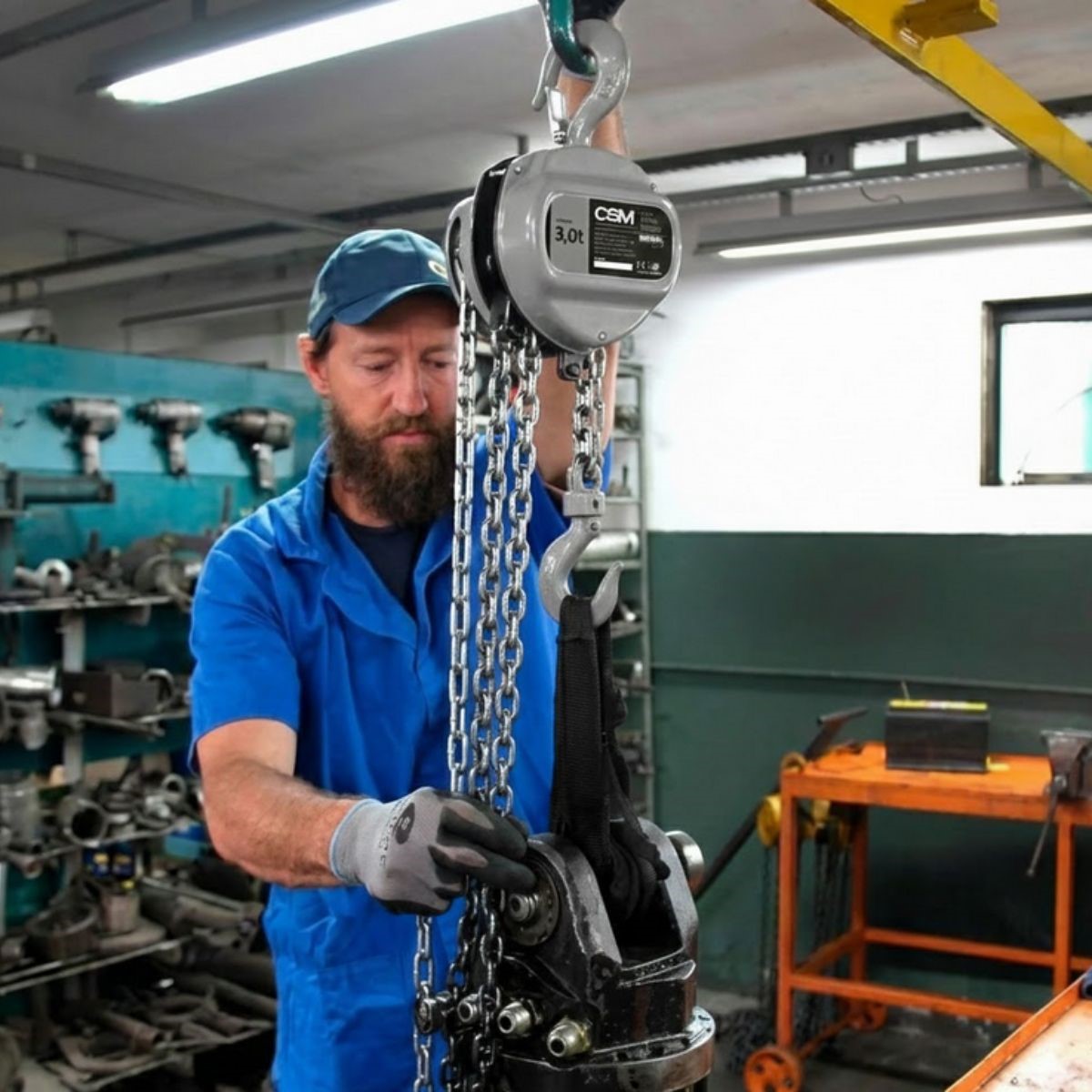 Código do Fornecedor: 71000604Marca: CSMConteúdo da Embalagem: 1 Talha Manual de Corrente TC3000 5M CSMDETALHES TÉCNICOS• Modelo: TC3000• Tipo: Talha manual de corrente• Capacidade de suspensão: 3.000 kgf• Altura de elevação: 5 m• Número de correntes de carga: 2• Corrente de carga: Elo grau 8, 8 x 24 mm• Esforço necessário máximo: 568 N• Gancho: aço forjado com indicador de deformação e rotação 360°• Engrenagem de elevação: aço temperado• Catraca com dupla trava de freio• Dimensões do equipamento (mm): A: 175, B: 145, C: 600, D: 35, E: 750• Dimensões da embalagem (CxLxA): 200 x 145 x 446 mm• Corrente de levante (CxLxA): 5 x 25 x 17 mm• Peso líquido: 28 kg• Material da corrente: galvanizada com tratamento anticorrosivo• Fator de segurança: 4:1• Testada individualmente com 150% da capacidade nominalAPLICAÇÕES E DICAS DE USOIndicada para elevação e movimentação de cargas em indústrias, galpões, oficinas, armazéns, estruturas de palco e agronegócio. A talha TC3000 permite instalação em vigas ou trilhos, garantindo segurança e praticidade. Indicadores de deformação nos ganchos permitem rápida inspeção visual, prevenindo sobrecargas e mau uso. Seu design compacto e leve facilita transporte e instalação em diversos ambientes de trabalho.DESTAQUES E DIFERENCIAIS• Correntes de carga grau 8 com galvanização para maior durabilidade e menor manutenção• Fator de segurança 4:1, suportando até quatro vezes a capacidade nominal• Gancho forjado com rotação de 360° e indicador de deformação• Dupla trava de freio para máxima confiabilidade e segurança• Engrenagem de elevação em aço temperado, resistente ao desgaste• Dupla roldana e guia de corrente em aço temperado• Testada individualmente com 150% da capacidade nominal, conforme normas NBR 16324• Compacta, portátil e resistente, ideal para aplicações profissionais intensivas• Certificada para o mercado europeu, adequada para condições extremasGarantia: 6 meses