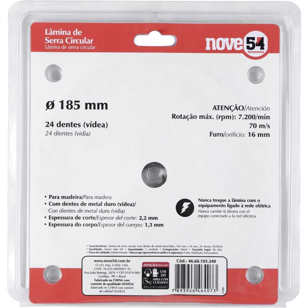 Lâmina de serra circular vídea 185mm 24 dentes Nove54
