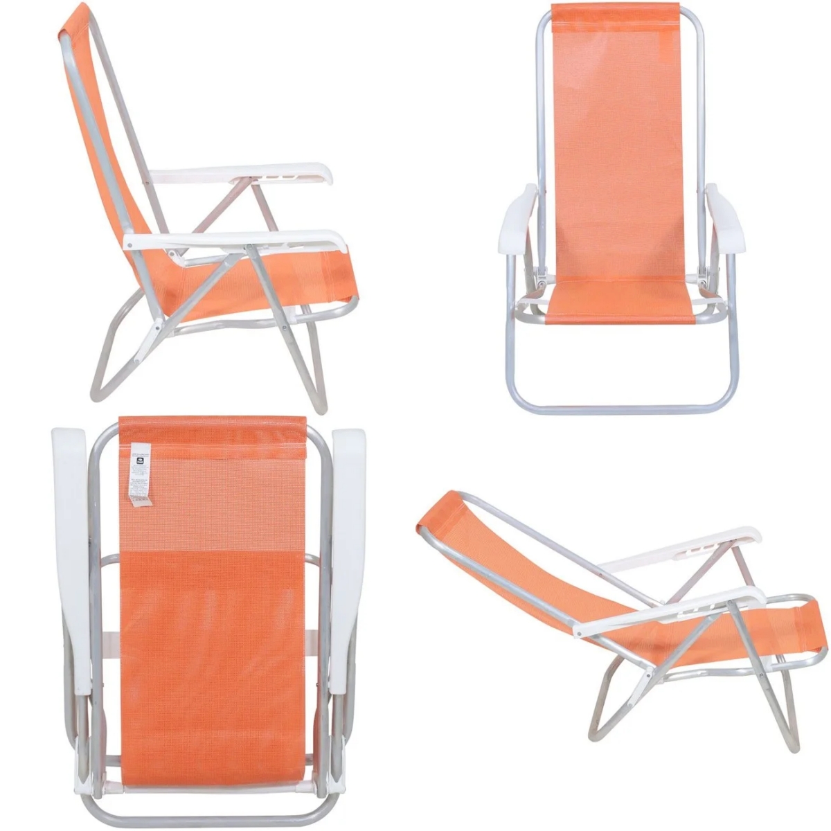 Cadeira Lazy Reclinável 4 Posições Alumínio Laranja Bel