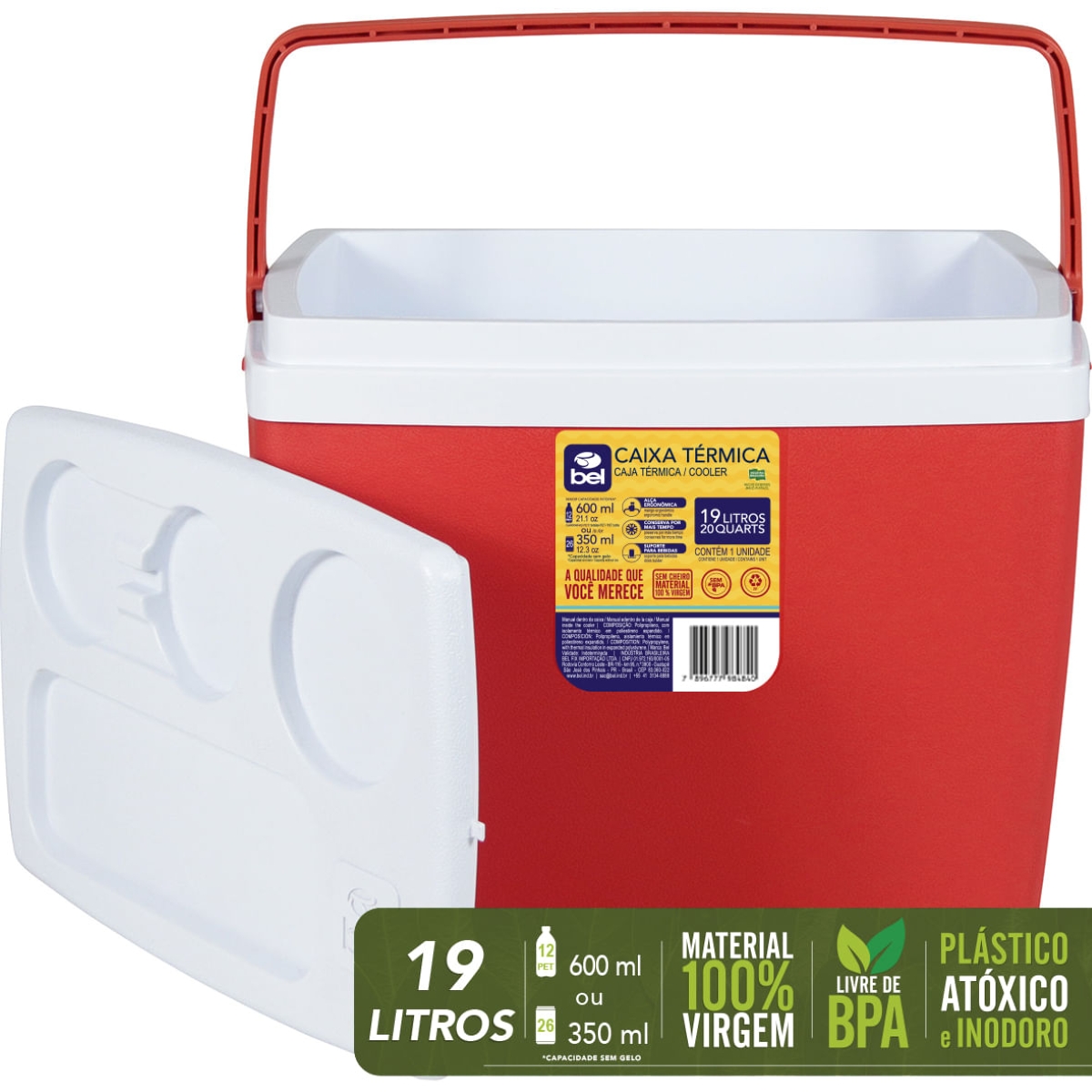 Caixa Térmica Bel 19 Litros Vermelha Polipropileno Virgem com Isolamento EPS