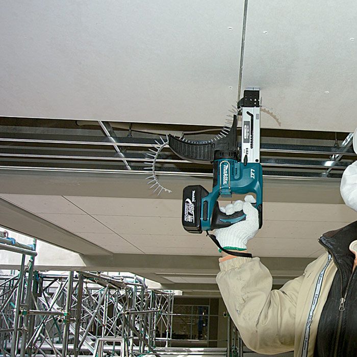 Código do Fornecedor: DFR550RFE Marca: Makita Conteúdo da embalagem: 1 Parafusadeira Auto Alimentacao Sem Fio 18V Com 2 Baterias Carregador Maleta e Bit DFR550RFE Makita Especificações: Capacidade parafuso para gesso: 25 - 55mmEncaixe sextavado: 1/4"Rotações por minuto: 4.000Dimensões (C x L x A): 424 x 80 x 238mmPeso: 2,3kgBateria: 18V Faixa de alta capacidade do parafuso agrupado de 25 mm a 55 mmCaixa de alimentação automática de alumínio resistente a poeira e oferece um parafusamento suaveEmbreagem silenciosa usa materiais de maior durabilidade, aumentando a eficiência da operação e diminuindo o ruídoAjuste de profundidade do parafuso sem ferramentas para fácil configuração da profundidade Itens que acompanham: 2 baterias 18V 3,0 Ah, carregador rápido, bit phillips e maleta Garantia: 12 Meses