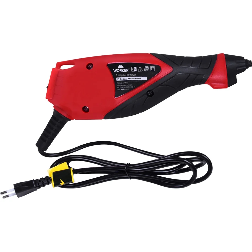Código do Fornecedor: 964700 Marca: Worker Conteúdo da embalagem: 1 Gravador Elétrico 220V LED 9 Posições Worker O gravador Elétrico da Worker é indicado para gravação ou decoração em metais, vidros, pedras, plásticos rígidos e madeiras. A solução ideal para realizar gravação, pequeno, prático, leve e muito fácil de usar. Dispõe de um design ergonômico, que proporciona comodidade na hora do uso, garantindo resultados perfeitos. Além de sua ponta de carboneto de tungstênio, também possui uma ponta de diamante para gravuras em materiais duros e vidro. Especificação do produto: Leve e compacto Uso confortável e alto desempenho9 posições de ajusteLuz de LEDInterruptor liga/desligaPorta-ponta de gravaçãoSeletor de ajuste de pontaParafuso da ponta de gravaçãoCabo de alimentação Características Técnicas: Tensão: 220VPotência: 10WFrequência: 60HzPulsos por minuto: 7.100Posições de ajuste: 9Dimensões: 160 mm x 40 mmPeso: 360g Acompanha: 1 placa (algarismos/ alfabetos/ símbolos)2 pontas1 chave allen Garantia: 3 meses
