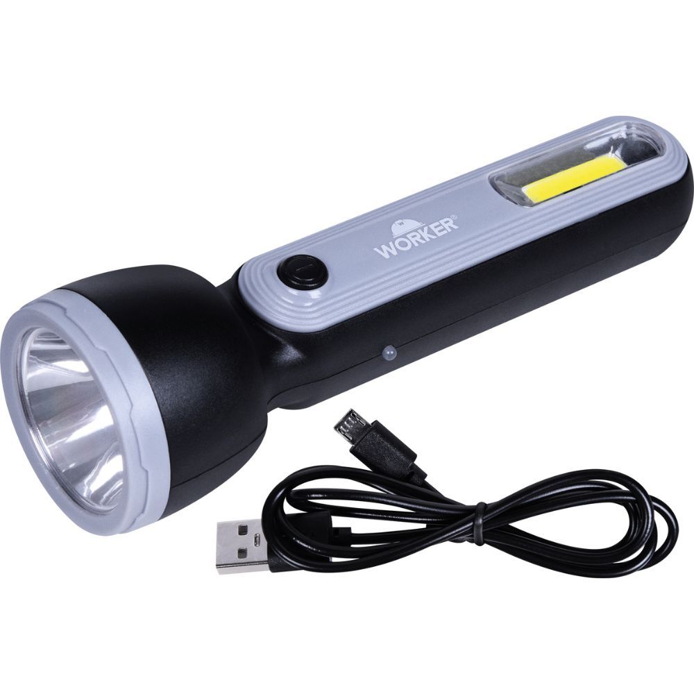 Lanterna LED Recarregável 2 Leds 180Lm 2W 3.7V 1.2Ah 200m USB Worker LRW180