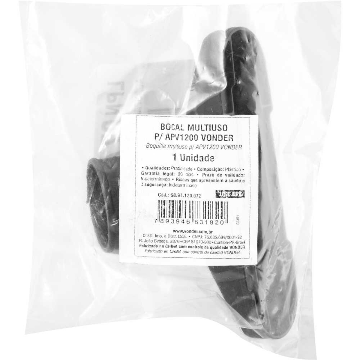 Bocal Multiuso para APV1200 Vonder - Reposição Original e Alta Performance Este bocal multiuso é a peça de reposição ideal para manter o seu aspirador de mão APV1200 Vonder funcionando com a mesma eficiência do primeiro dia. Projetado especificamente para o modelo APV 1200, este componente garante o encaixe perfeito e o desempenho máximo na hora da limpeza, seja para aspirar o chão, tapetes ou superfícies mais delicadas. O design multifuncional do bocal permite uma adaptação rápida a diferentes tipos de sujeira e pisos, otimizando a sucção e garantindo que toda a potência do equipamento seja aproveitada. Substituir a peça desgastada por esta original restaura a capacidade de limpeza da sua ferramenta, estendendo sua vida útil e evitando a perda de potência comum em bocais danificados. Instalação simples e imediata, sem a necessidade de ferramentas extras. Especificações Material: Plástico resistente Modelo compatível: APV 1200 Vonder Peso aproximado: 0,016 kg Código do Fornecedor: 6897120072 Itens Inclusos 1 Bocal multiuso Perguntas Frequentes (FAQ) Pergunta: Este bocal é compatível com outros modelos de aspirador?Resposta: Não. Este bocal foi projetado exclusivamente para o modelo APV1200 Vonder. Não recomendamos o uso em outros modelos para evitar danos ou perda de eficiência. Pergunta: O material do bocal é durável?Resposta: Sim. Ele é fabricado em plástico de alta resistência, projetado para suportar o atrito constante com o piso e o fluxo de ar intenso do aspirador. Pergunta: Qual é o prazo de garantia?Resposta: Garantia legal: 90 dias
