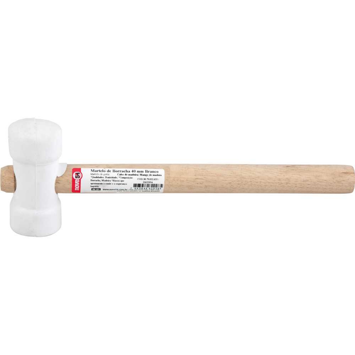Martelo de Borracha Nove54 40 mm BrancoSe você busca um martelo versátil, preciso e ideal para trabalhos que exigem força controlada, o Martelo de Borracha Branco 40 mm Nove54 é a ferramenta certa. Projetado para profissionais e hobbystas que valorizam acabamento limpo, esse modelo alia qualidade, leveza e desempenho, sendo amplamente utilizado em montagens delicadas, assentamento de pisos, ajustes em móveis e aplicações onde o impacto não pode marcar a superfície.Sua cabeça de borracha branca de 40 mm garante batidas firmes e suaves ao mesmo tempo, protegendo materiais sensíveis contra danos e marcas. Por isso, é ideal para ceramistas, marceneiros, instaladores, pedreiros e técnicos de manutenção, entre outros profissionais que trabalham com superfícies que precisam ser preservadas.O cabo de madeira proporciona pegada confortável e excelente absorção de impacto, permitindo maior controle durante o uso. A combinação entre a borracha de alta densidade e o design balanceado resulta em um martelo com distribuição de peso eficiente, favorecendo a produtividade no dia a dia. Com apenas 230 gramas, o Martelo de Borracha Nove54 é leve e fácil de manusear, reduzindo o cansaço após longas horas de trabalho. Especificações- Qualificação Técnica- Diâmetro da cabeça: 40 mm- Material da cabeça: Borracha- Material do cabo do martelo: Madeira- Cor do martelo: Branco- Massa aproximada (peso) (kg): 0,230 kgItens inclusos- Martelo Borracha 40 mm Branco Nove54Garantia- 03 meses com o Fabricante