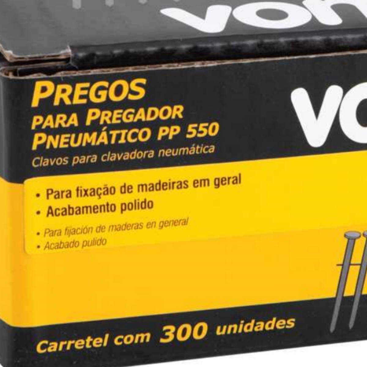Prego Liso Vonder 38 mm Polido com 300 Peças PP 550 - Vonder OficialO Prego Liso Vonder 38 mm Polido PP 550 é a solução perfeita para quem busca praticidade, eficiência e durabilidade nas tarefas de fixação de madeiras. Este prego é uma excelente escolha para profissionais que trabalham com pregadores pneumáticos, como o PP 550 Vonder, proporcionando alta produtividade e precisão no processo de fixação. A qualidade e o design do prego tornam o trabalho mais ágil e seguro, resultando em acabamentos impecáveis e estruturas mais resistentes.Fabricado com aço carbono de alta resistência, o Prego Liso Vonder 38 mm apresenta uma durabilidade superior, capaz de suportar as mais diversas condições de uso. Seu acabamento polido garante não apenas um visual limpo e profissional, mas também maior resistência à corrosão e ao desgaste, o que aumenta a vida útil do produto mesmo em ambientes mais exigentes.A medida de 38 mm de comprimento é ideal para aplicações em madeiras de diversos tipos e espessuras, tornando-o versátil para uma variedade de projetos. Seja para estruturas de móveis, reparos ou construções gerais, esse prego é uma escolha confiável para garantir fixações seguras e precisas.Uma das grandes vantagens do Prego Liso Vonder 38 mm Polido é a possibilidade de automatizar o processo de fixação quando utilizado em sistemas pneumáticos, como o Pregador Pneumático PP 550 Vonder. A utilização de pregos liso como este, combinada com ferramentas adequadas, proporciona um aumento da produtividade em tarefas de grande escala, como a montagem de móveis, construção de estantes e outros trabalhos que exigem eficiência e rapidez.Especificações- Modelo do pregador: PP 550- Tipo do prego: Liso- Diâmetro do prego: 2,1 mm- Comprimento do prego: 38,0 mm- Material do prego: Aço carbono- Acabamento do prego: Polido- Quantidade na caixa: 300 peças- Massa aproximada (peso) (kg): 0,365 kgItens inclusos- 1 Carretel com 300 pregosGarantia- 03 meses com o fabricante