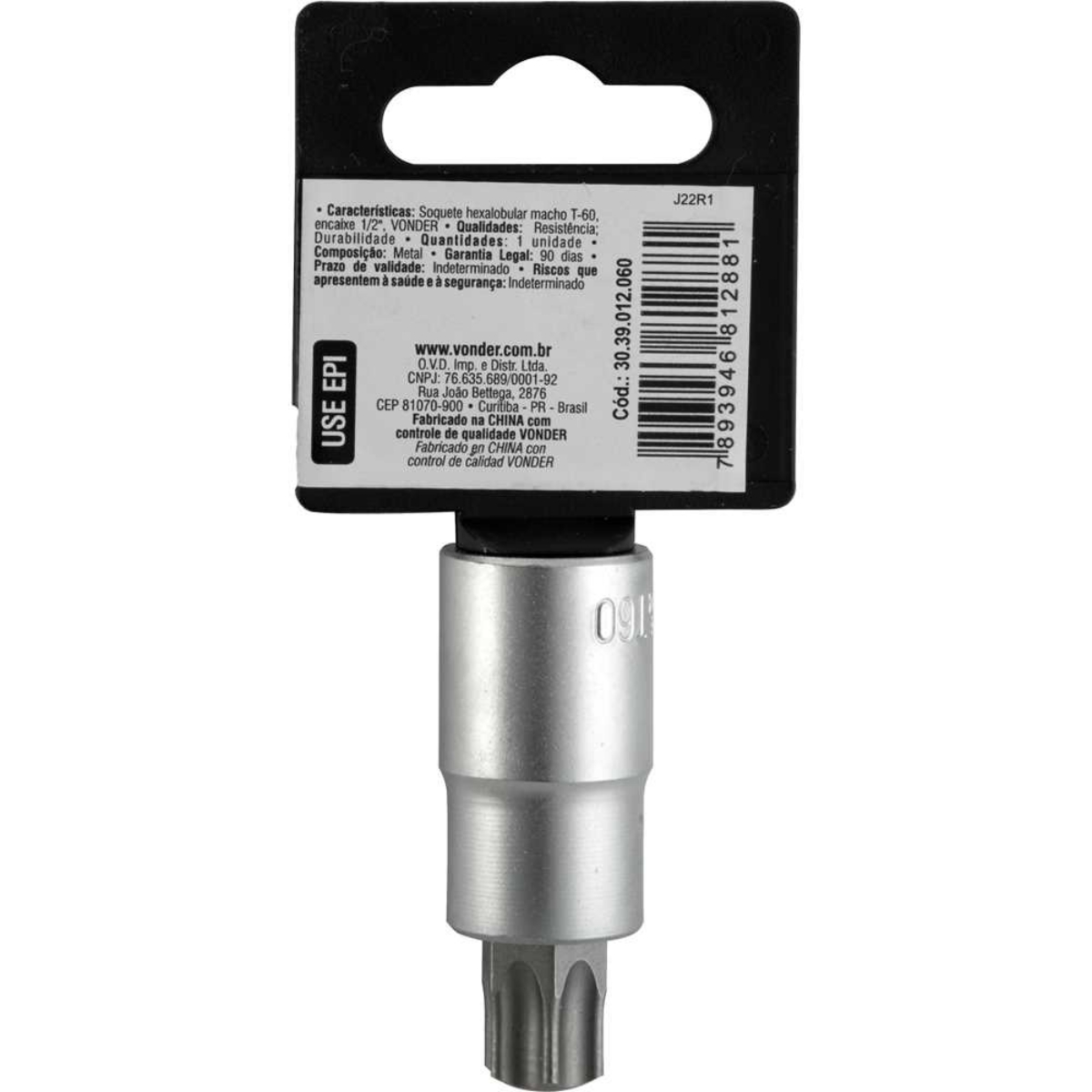 #html-body [data-pb-style=Y1CX99O]{justify-content:flex-start;display:flex;flex-direction:column;background-position:left top;background-size:cover;background-repeat:no-repeat;background-attachment:scroll}Soquete Vonder Hexalobular Encaixe 1/2'' T60 - Vonder OficialQuando a tarefa exige máxima resistência, encaixe preciso e durabilidade profissional, o Soquete Vonder Hexalobular T60 com encaixe de 1/2" entrega exatamente o que você precisa. Criado para oferecer alto desempenho em aplicações industriais e automotivas, ele é ideal para fixar e soltar parafusos do tipo Torx (hexalobular) com segurança e eficiência.Fabricado em aço cromo vanádio, o soquete T60 da Vonder é sinônimo de robustez. Esse material é conhecido por sua alta resistência à torção e ao desgaste, suportando uso intenso sem comprometer a integridade da ferramenta. O acabamento jateado e a ponta fosfatizada garantem proteção extra contra oxidação e corrosão, mesmo em ambientes mais exigentes, como oficinas, indústrias ou trabalhos ao ar livre.O encaixe padrão de 1/2” assegura compatibilidade com a maioria das catracas, torquímetros e ferramentas pneumáticas do mercado. A medida T60 é frequentemente utilizada em parafusos de fixação pesada, comuns em veículos utilitários, máquinas agrícolas, equipamentos industriais e estruturas metálicas.Com comprimento total de 55 mm e ponta de 16 mm, este modelo é do tipo curto – ideal para trabalhos que exigem torque elevado com controle absoluto, principalmente em áreas de acesso limitado.Especificações- Medida do soquete hexalobular: T60- Medida do encaixe (pol): 1/2"- Material : Aço cromo vanádio- Acabamento: Jateado- Tipo de soquete: Curto- Comprimento da ponta: 16 mm- Comprimento total: 55 mm- Massa aproximada (peso) (kg): 0,07 kg- Massa aproximada (peso) (kg): 0,07 kgItens inclusos- 1 Soquete hexalobularGarantia- 03 meses com o fabricante
