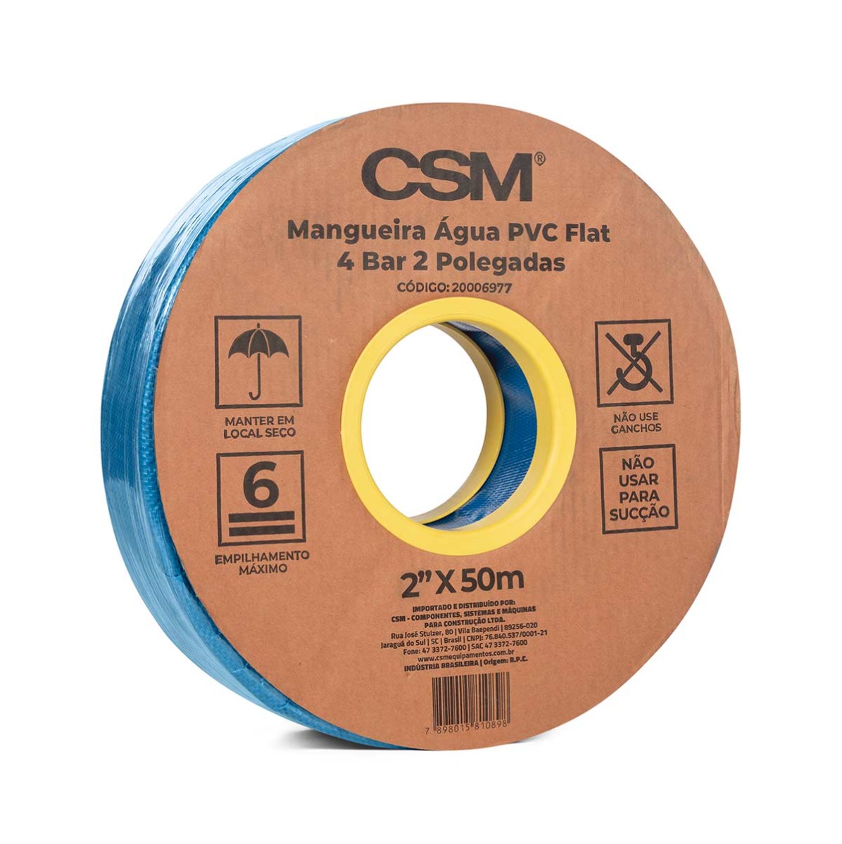 Código do Fornecedor: 20006977 Marca: Csm Conteúdo da embalagem: 1 Mangueira Pvc Azul Desague 4 Bar 2'' Polegadas 50 metros Csm Material PVC Quantidade Rolo com 50 metrosA Mangueira de Água PVC Flat indicada para ser utilizada em conjunto com motobombas, que facilita o escoamento e transporte de grandes volumes de água de forma eficiente e rápidas, incluindo esvaziamento de sapatas, poços e valas, irrigação de cultivos, aspersão de fertilizantes e pesticidas, entre outras atividades relacionadas à manipulação de água. Com materiais de alta qualidade, esta mangueira é durável e resistente, garantindo um desempenho consistente e confiável em diversas condições de trabalho. Características Principais: Material: Fabricada em PVC de alta qualidade, garantindo durabilidade e resistência ao desgaste.Pressão de Trabalho: Suporta até 4 Bar, ideal para aplicações de desague e drenagem.Diâmetro: 2 polegadas, permitindo um fluxo eficiente de líquidos.Comprimento: 50 metros, oferecendo alcance suficiente para cobrir longas distâncias sem necessidade de emendas.Cor: Azul, facilitando a identificação e manuseio em campo.Modelo: Csm, reconhecida pela qualidade e confiabilidade em soluções de transporte de líquidos.Benefícios: Resistência: Construída para suportar condições adversas e uso contínuo, garantindo uma longa vida útil.Versatilidade: Adequada para uso em diversas aplicações, incluindo drenagem, irrigação e escoamento de água em projetos agrícolas, industriais e residenciais.Flexibilidade: Fácil de manusear e instalar, mesmo em terrenos difíceis ou espaços restritos.Eficiência: A combinação de alta pressão e grande diâmetro garante um fluxo constante e eficiente, otimizando o tempo de trabalho.