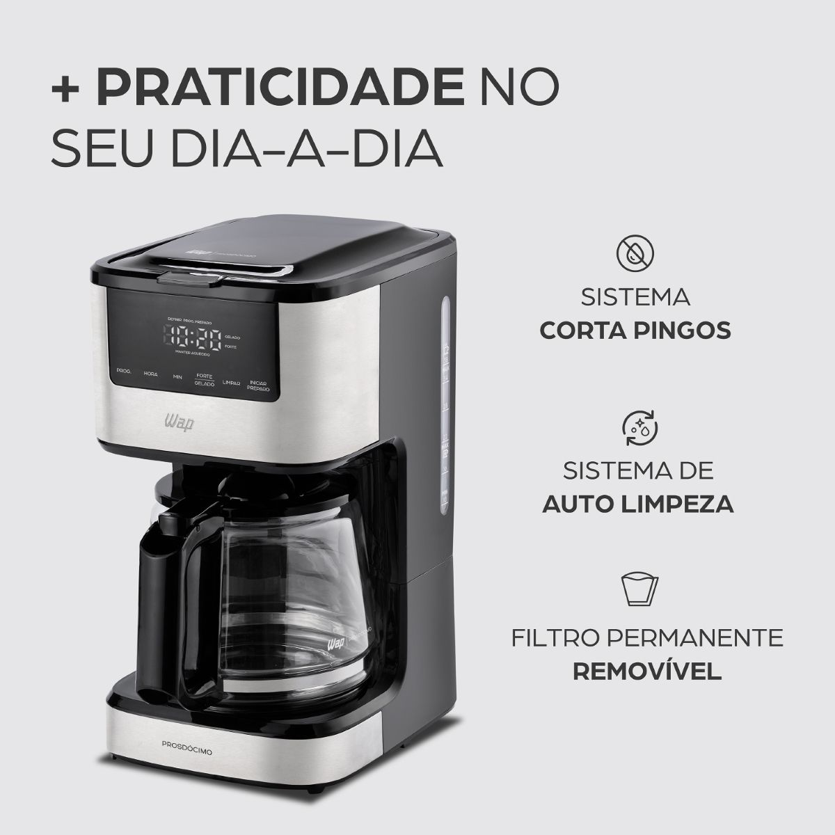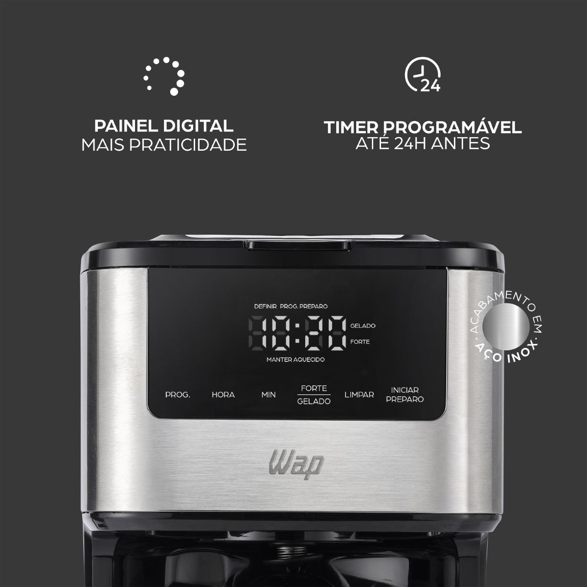 Cafeteira Elétrica Digital Aroma Programável WAP WCD1500 com Timer Programável de 24 horas 127V