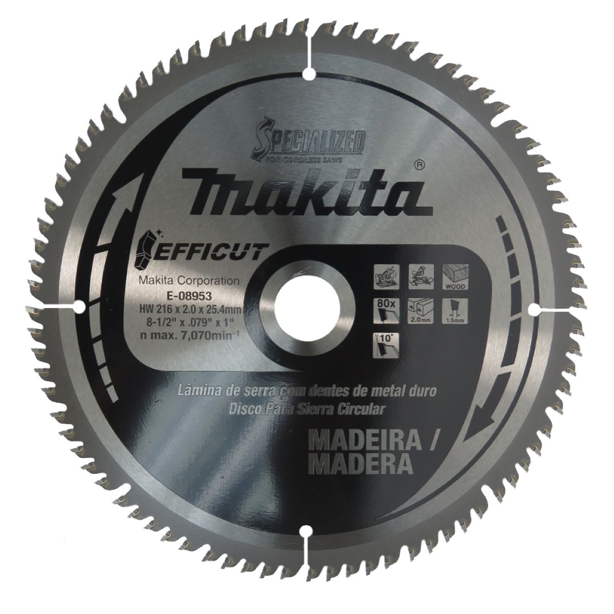 Disco de Serra Efficut 216 mm x 25.4 mm 80T Makita