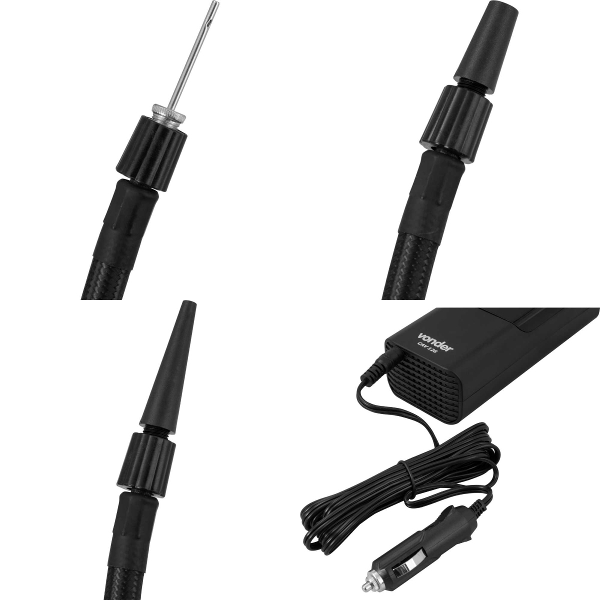 #html-body [data-pb-style=JDGK0YS]{justify-content:flex-start;display:flex;flex-direction:column;background-position:left top;background-size:cover;background-repeat:no-repeat;background-attachment:scroll}Compressor Automotivo Vonder CAV 126 12V Portátil - Vonder OficialO Compressor Automotivo Vonder CAV 126 12V é a solução perfeita para quem busca autonomia, segurança e praticidade no dia a dia. Compacto, leve e fácil de usar, este compressor portátil é um verdadeiro aliado em emergências ou na rotina de manutenção, seja para encher pneus de carro, calibrar bicicletas, inflar bolas esportivas, boias de piscina ou outros itens infláveis com rapidez e precisão.Com design moderno e funcional, o CAV 126 vem equipado com visor LCD digital, que permite uma leitura clara da pressão, e iluminação LED auxiliar, ideal para uso noturno ou em ambientes com pouca luz. Sua pressão máxima de trabalho é de 150 lbf/pol², com uma capacidade de produção de 15 L/min, garantindo um desempenho eficiente mesmo em situações de urgência.Especificações- Material da carcaça: Plástico (ABS)- Capacidade de produção de ar: 15 L/min- Pressão máxima de trabalho: 150 lbf/pol²- Potência: 120 W- Tensão (V): 12 V- Rotação (rpm): 20.000/min- Comprimento da mangueira: 0,30 m- Comprimento da mangueira: 0,30 m- Comprimento do cordão elétrico de alimentação: 3,0 m- Dimensões: 175 mm x 74 mm x 49 mm- Massa aproximada (peso) (kg): 0,77 kgItens inclusos- 1 Compressor Automotivo 12V Portatil CAV126 VonderGarantia- 03 meses com o fabricante