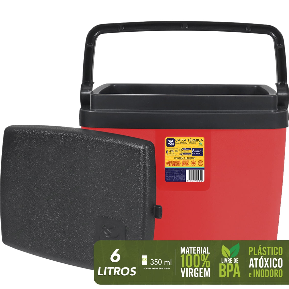 Caixa Térmica Bel 6 Litros Vermelha e Preta com Isolamento Térmico e Trava