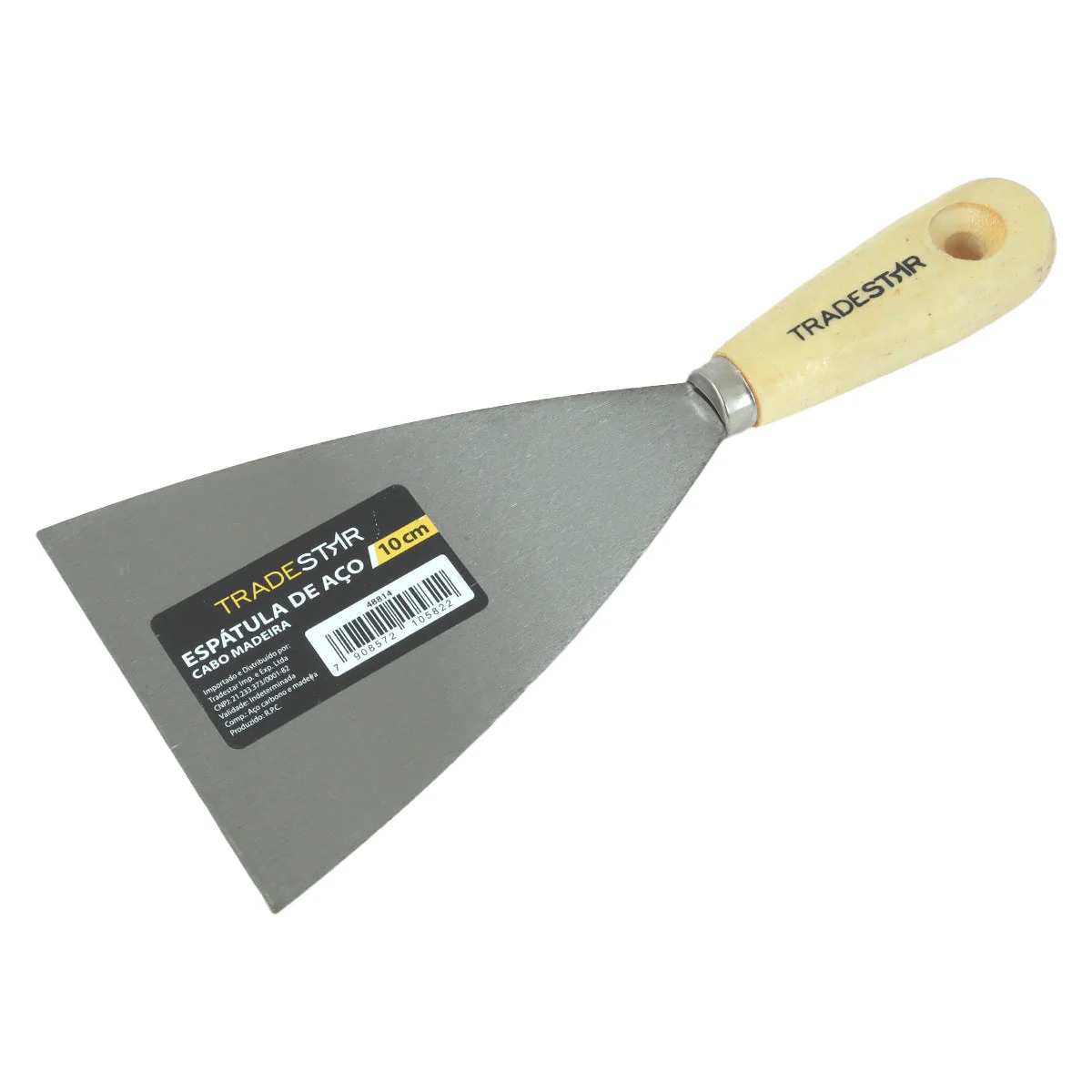 Espátula 10 cm Tradestar Aço Gesso Massa Corrida Multiuso Pintor DrywalA Espátula Tradestar 10 cm com Cabo de Madeira é a ferramenta indispensável para profissionais da construção civil, pintores e entusiastas do faça-você-mesmo que buscam praticidade, resistência e acabamento de qualidade em seus trabalhos. Fabricada em aço de alta durabilidade, proporciona excelente desempenho em tarefas que exigem precisão, como aplicação de massa corrida, gesso e trabalhos em drywall.Com lâmina de 10 cm de largura, a espátula oferece o tamanho ideal para áreas menores e detalhes, permitindo maior controle no manuseio e acabamento mais uniforme. O cabo de madeira ergonômico garante firmeza e conforto, reduzindo a fadiga durante o uso prolongado e assegurando maior segurança ao operador.Essa ferramenta se destaca pela versatilidade, atendendo tanto a aplicações profissionais em obras e reformas quanto a pequenos reparos residenciais. Além disso, sua estrutura robusta garante longa vida útil, tornando-a um investimento confiável para diferentes tipos de serviço.Especificações- Largura da lâmina: 10 cm- Material da lâmina: Aço resistente de alta qualidade- Cabo: Madeira ergonômica com acabamento natural- Aplicações: Massa corrida, gesso, drywall, pintura e pequenos reparosItens inclusos- 1 Espátula 10 cm Aço Cabo Madeira TradestarGarantia- 03 meses com o Fabricante