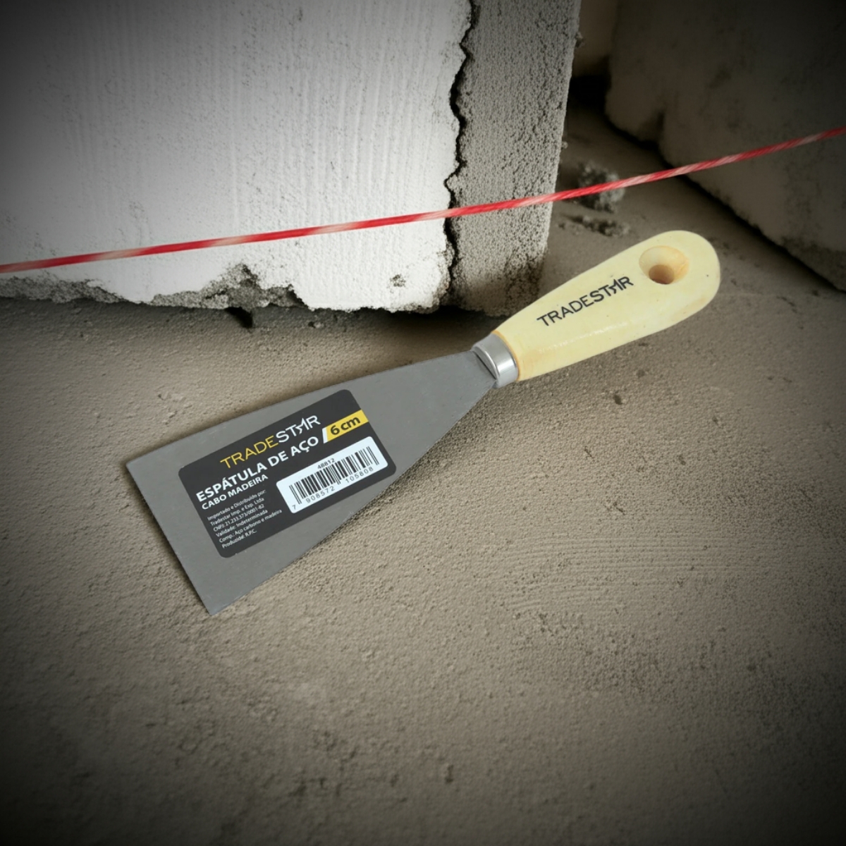 Espátula 6 cm Tradestar Aço Gesso Massa Corrida Multiuso Pintor DrywalA Espátula Tradestar 6 cm com Cabo de Madeira é a ferramenta indispensável para profissionais da construção civil, pintores e entusiastas do faça-você-mesmo que buscam praticidade, resistência e acabamento de qualidade em seus trabalhos. Fabricada em aço de alta durabilidade, proporciona excelente desempenho em tarefas que exigem precisão, como aplicação de massa corrida, gesso e trabalhos em drywall.Com lâmina de 6 cm de largura, a espátula oferece o tamanho ideal para áreas menores e detalhes, permitindo maior controle no manuseio e acabamento mais uniforme. O cabo de madeira ergonômico garante firmeza e conforto, reduzindo a fadiga durante o uso prolongado e assegurando maior segurança ao operador.Essa ferramenta se destaca pela versatilidade, atendendo tanto a aplicações profissionais em obras e reformas quanto a pequenos reparos residenciais. Além disso, sua estrutura robusta garante longa vida útil, tornando-a um investimento confiável para diferentes tipos de serviço.Especificações- Largura da lâmina: 6 cm- Material da lâmina: Aço resistente de alta qualidade- Cabo: Madeira ergonômica com acabamento natural- Aplicações: Massa corrida, gesso, drywall, pintura e pequenos reparosItens inclusos- 1 Espátula 6 cm Aço Cabo Madeira TradestarGarantia- 03 meses com o Fabricante
