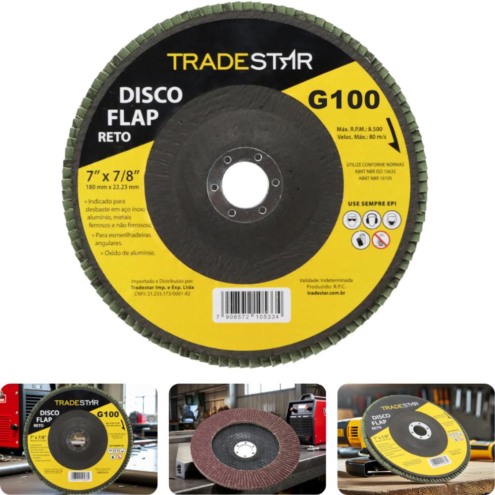 Disco Flap 180 mm G100 Fibra Reto Aço Tradestar