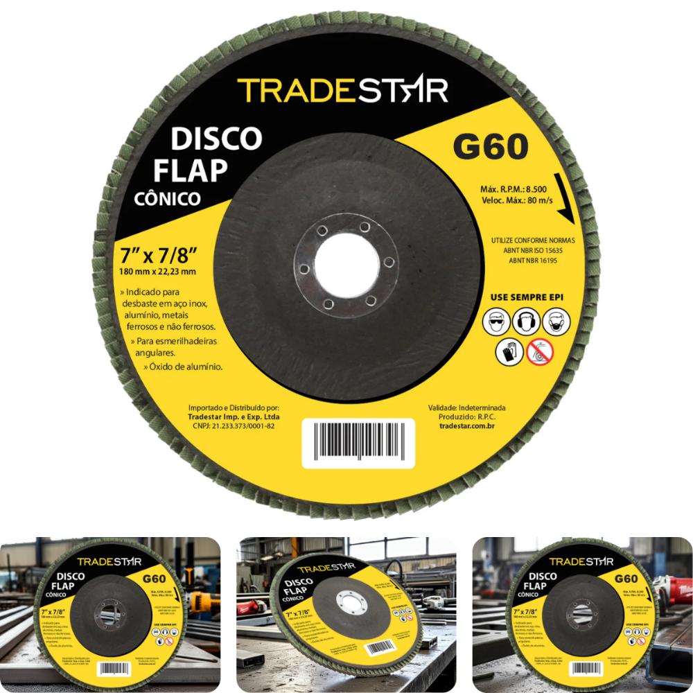Disco Flap 180 mm G60 Fibra Conico Aço Tradestar