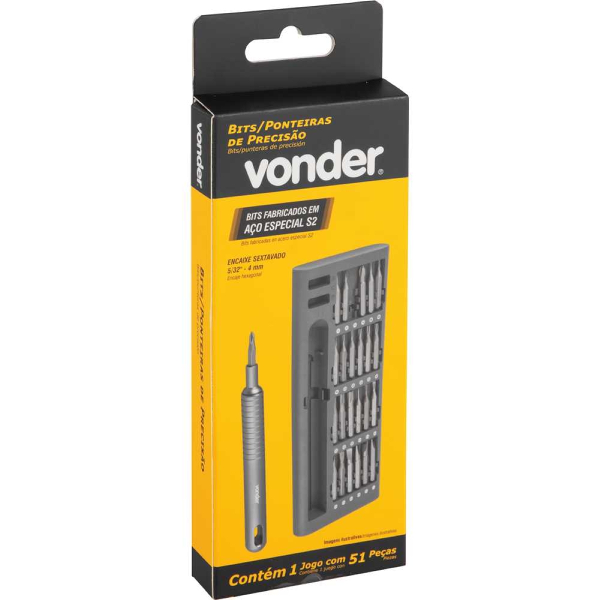 Jogo Bits Ponteira Precisão 51Pcs Vonder Aço S2 Fosfatizado Estojo com Adaptador e Magnetizador
