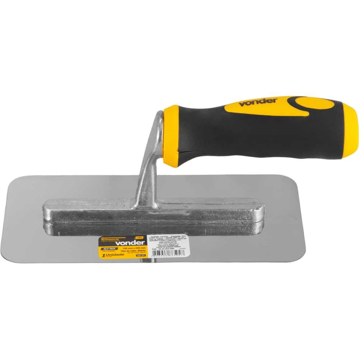 Desempenadeira Inox Vonder: Aplicação Perfeita e Acabamento Impecável Obtenha resultados profissionais em suas obras e reformas com a Desempenadeira Inox Vonder! Com dimensões de 240mm x 100mm e lâmina lisa, esta ferramenta é ideal para aplicar calfino, massa corrida, texturas e outros revestimentos com precisão e uniformidade. Seu cabo aberto com acabamento emborrachado proporciona maior conforto e segurança durante o uso, reduzindo a fadiga e garantindo um manuseio firme. Fabricada em aço inox de alta qualidade, a desempenadeira Vonder oferece durabilidade e resistência, suportando o uso contínuo em diversas aplicações. As bordas arredondadas evitam marcas indesejadas nas superfícies, proporcionando um acabamento impecável. Com apenas 270g, é leve e fácil de manusear, tornando o trabalho mais eficiente e menos cansativo. Perfeita para profissionais e entusiastas do 'faça você mesmo', a Desempenadeira Inox Vonder é a escolha certa para garantir a qualidade e beleza de seus projetos. Especificações Modelo da lâmina: Lisa Dimensões (L x C): 100 mm x 240 mm Material do cabo: Plástico com acabamento emborrachado Tipo de fixação do cabo: Soldado Tipo do cabo: Aberto Massa aproximada: 0,270 kg Itens Inclusos 1 Desempenadeira de aço inox Vonder Perguntas Frequentes (FAQ) Pergunta: Para quais tipos de materiais esta desempenadeira é indicada?Resposta: É indicada para aplicação de calfino, massa corrida, texturas, massa acrílica e outros revestimentos. Pergunta: O cabo da desempenadeira é confortável?Resposta: Sim, o cabo possui acabamento emborrachado que proporciona maior conforto e segurança durante o uso. Pergunta: Qual o período de garantia do produto?Resposta: Garantia legal: 90 dias.