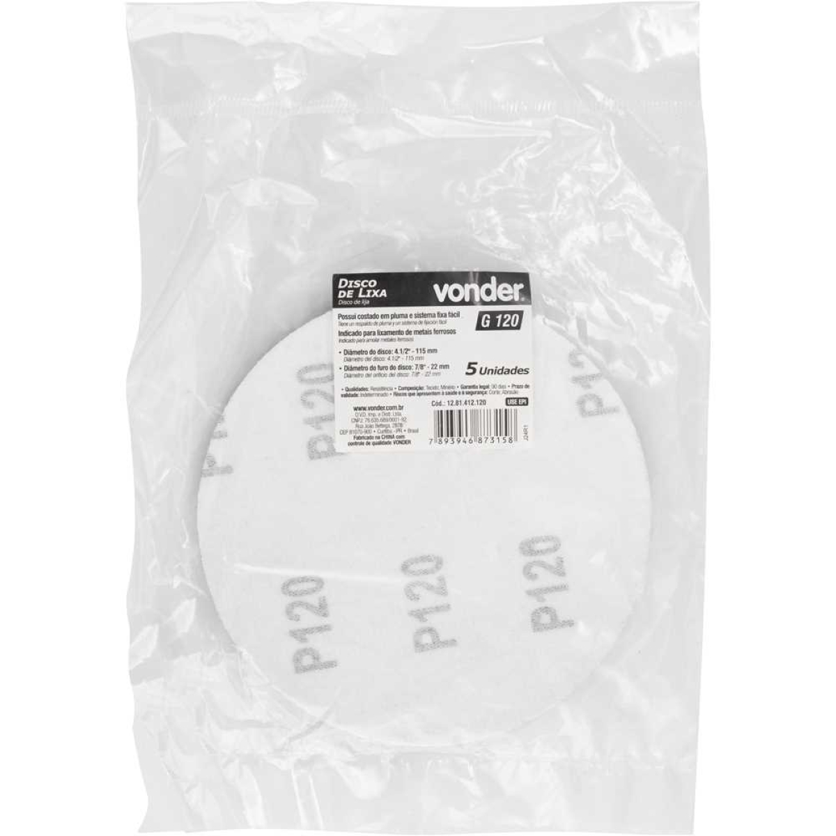 Jogo Disco De Lixa 4.1/2'' 115mm G120 Pluma 5Pcs Vonder
