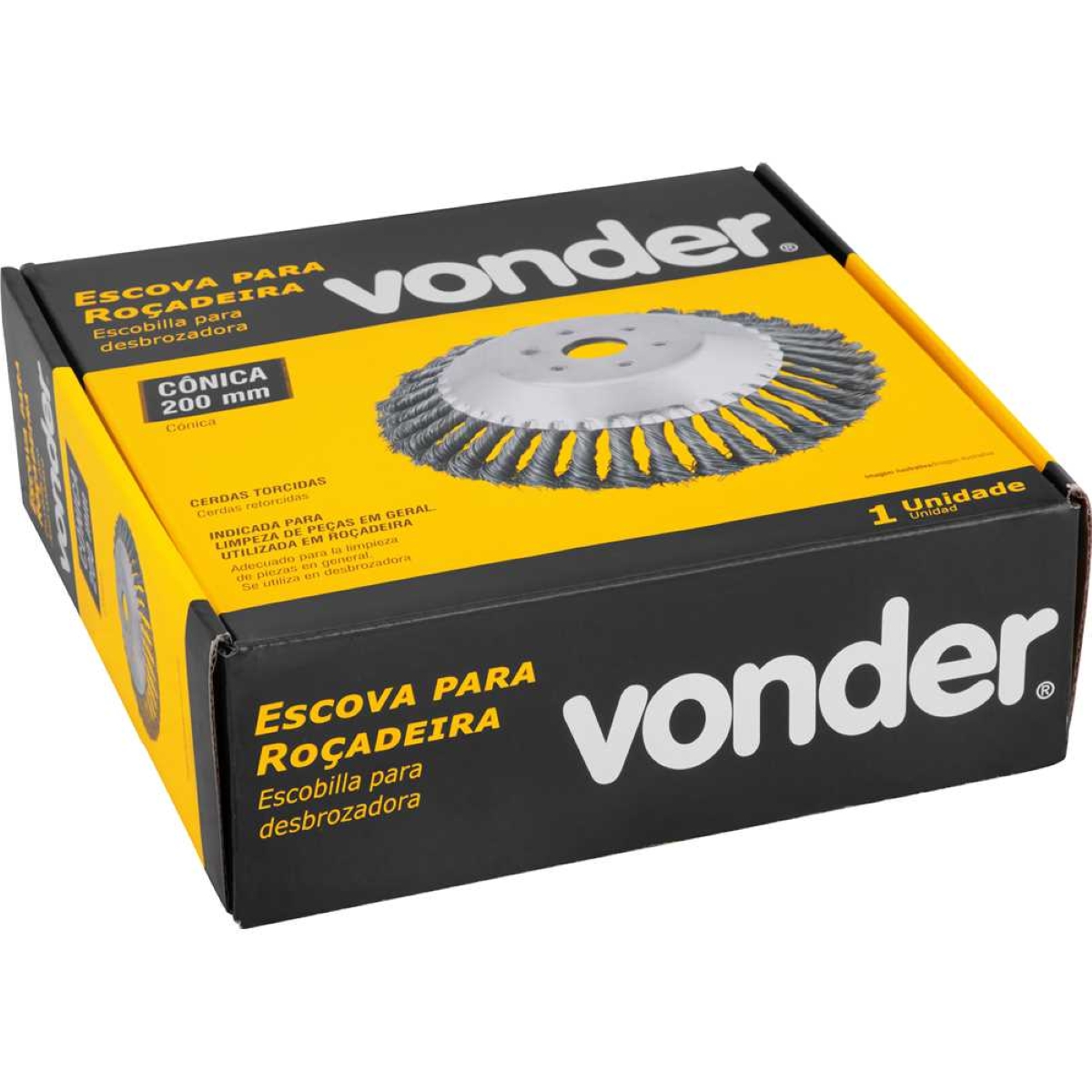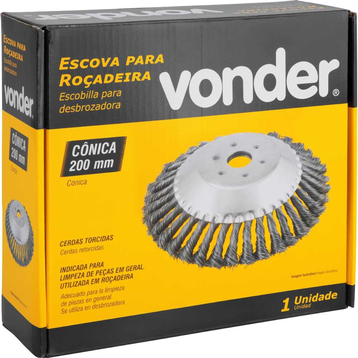 Escova Copo 200mm para Roçadeira Vonder: Limpeza Pesada e Eficiência Maximize a eficiência da sua roçadeira com a Escova Copo Vonder de 200mm! Projetada para limpeza pesada em diversas áreas, esta escova de aço torcido oferece um poder de remoção superior, ideal para remover sujeira incrustada, grama alta, musgo e outros resíduos. Com diâmetro de 200mm e cerdas de 40mm, garante uma cobertura ampla e eficaz, agilizando o trabalho e proporcionando resultados impecáveis. A compatibilidade com roçadeiras de 25,4mm (1 polegada) e a rotação máxima de 6.500/min asseguram um encaixe perfeito e desempenho otimizado. Fabricada pela Vonder, marca reconhecida pela qualidade e durabilidade de seus produtos, esta escova é a escolha certa para profissionais e usuários exigentes que buscam uma ferramenta robusta e confiável para suas tarefas de limpeza. Seu peso de 1,2kg garante estabilidade durante o uso, minimizando a fadiga e aumentando a precisão. Invista na Escova Copo Vonder e transforme a sua roçadeira em uma poderosa ferramenta de limpeza! Especificações Diâmetro do furo: 25,4 mm (1 polegada) Diâmetro da escova: 200 mm Comprimento das cerdas: 40 mm Rotação máxima: 6.500/min Massa aproximada: 1,2 kg Itens Inclusos 1 Escova de aço para roçadeira Perguntas Frequentes (FAQ) Pergunta: Qual o diâmetro do furo da escova?Resposta: O diâmetro do furo é de 25,4 mm (1 polegada). Pergunta: Qual o material das cerdas?Resposta: As cerdas são fabricadas em aço carbono torcido, proporcionando maior poder de remoção. Pergunta: Esta escova é compatível com qual tipo de roçadeira?Resposta: É compatível com roçadeiras que possuam furo de fixação de 25,4 mm. Pergunta: Qual a garantia do produto?Resposta: Garantia legal: 90 dias