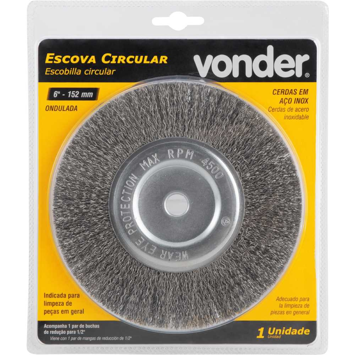 Escova Circular 6X1/2'' 4500Rpm Aço Inox Ondulado Vonder 12,7mm Furo 1/2''