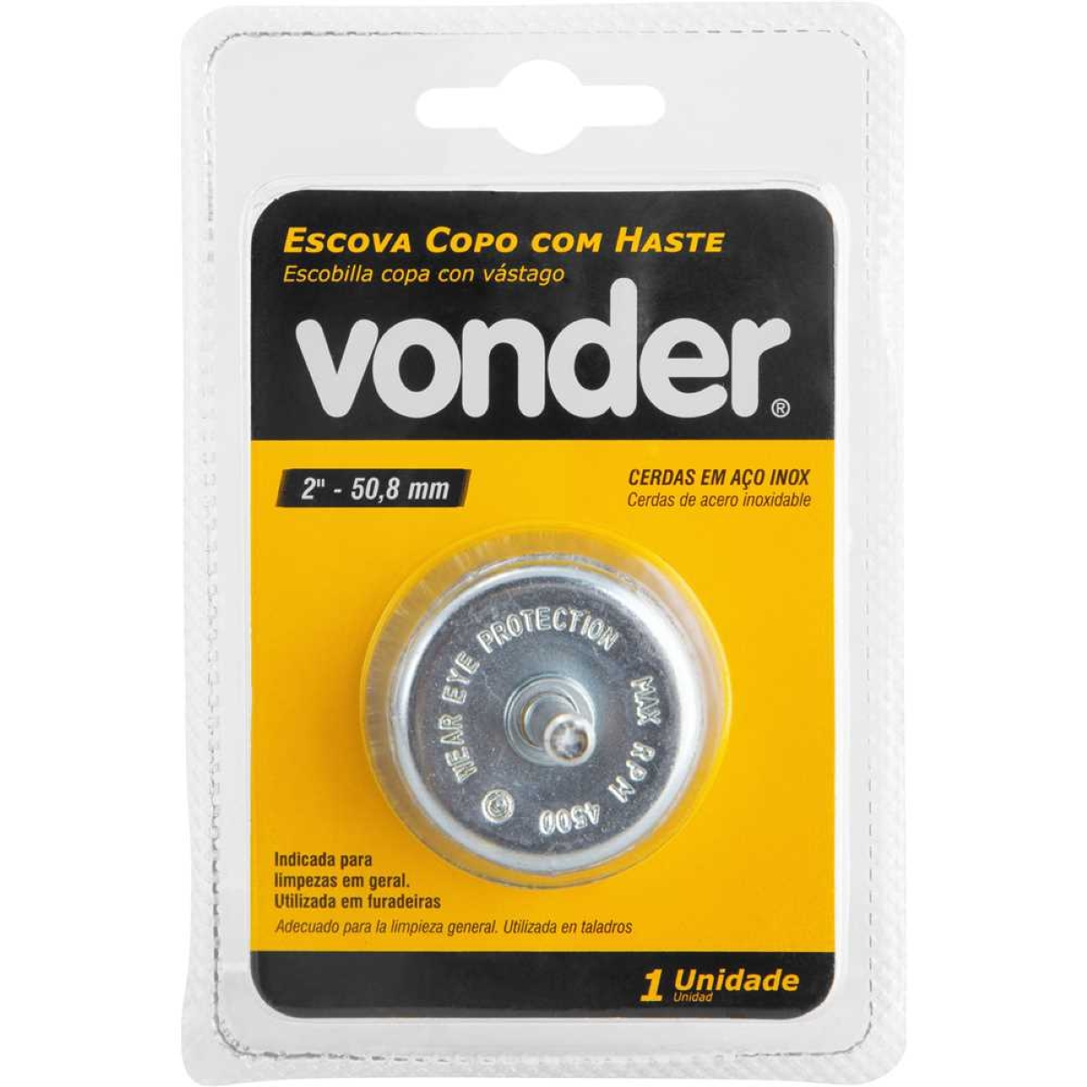Escova Copo 2'' Haste 1/4'' 4500Rpm Aço Inox Ondulado Vonder 6325000002