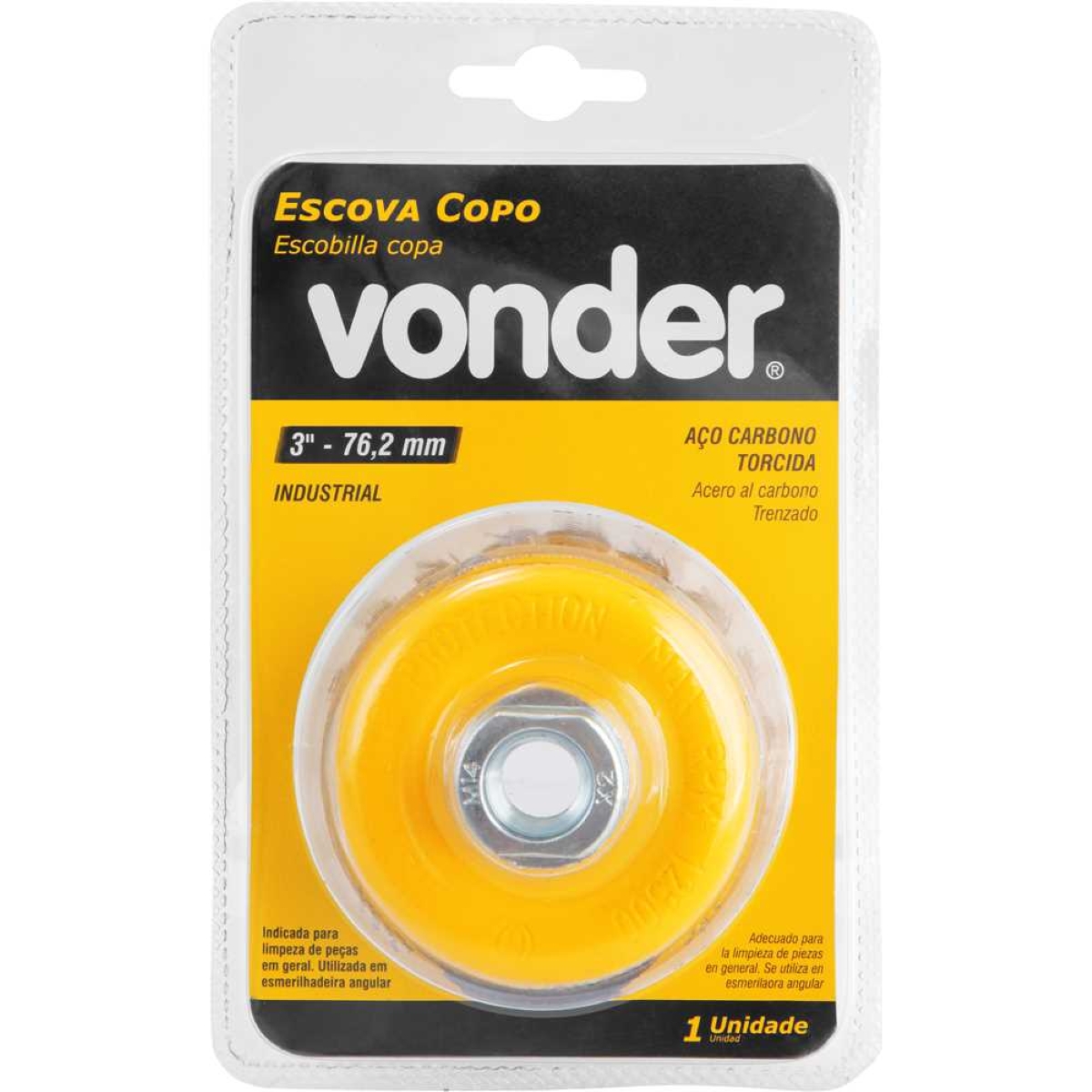 Escova Copo 3'' Rosca M14 12500Rpm Aço Carbono Torcido Vonder