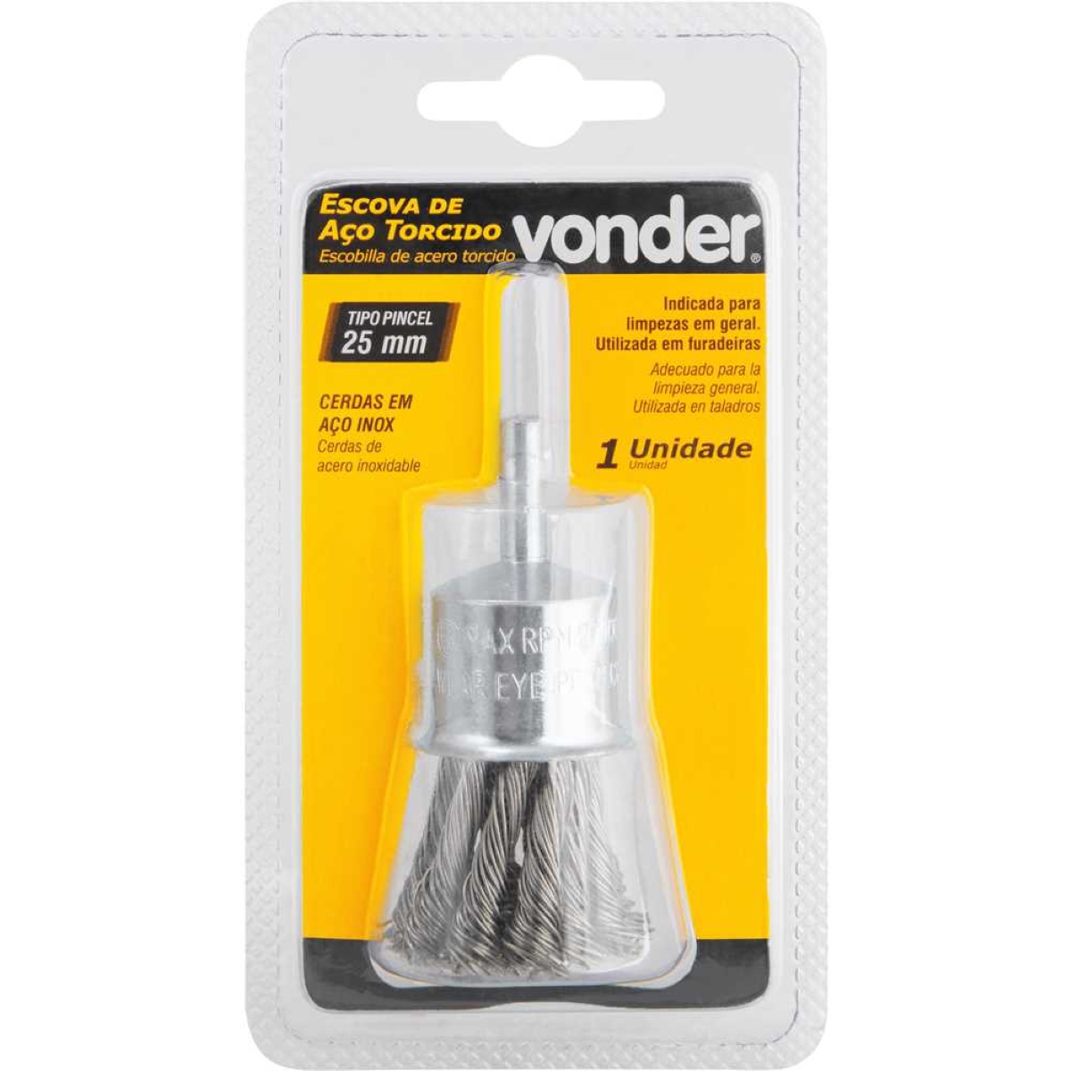 Escova Pincel Aço Inox 25mm 6mm 20000Rpm Vonder 6325100025 Resistente à Oxidação
