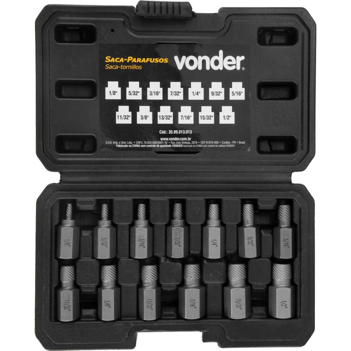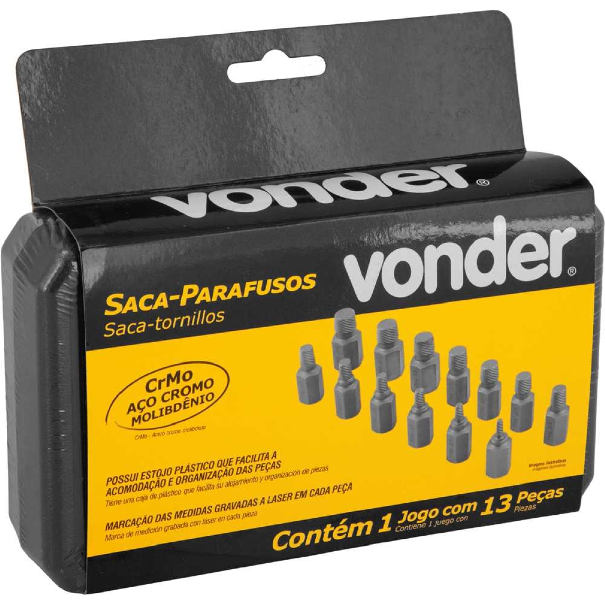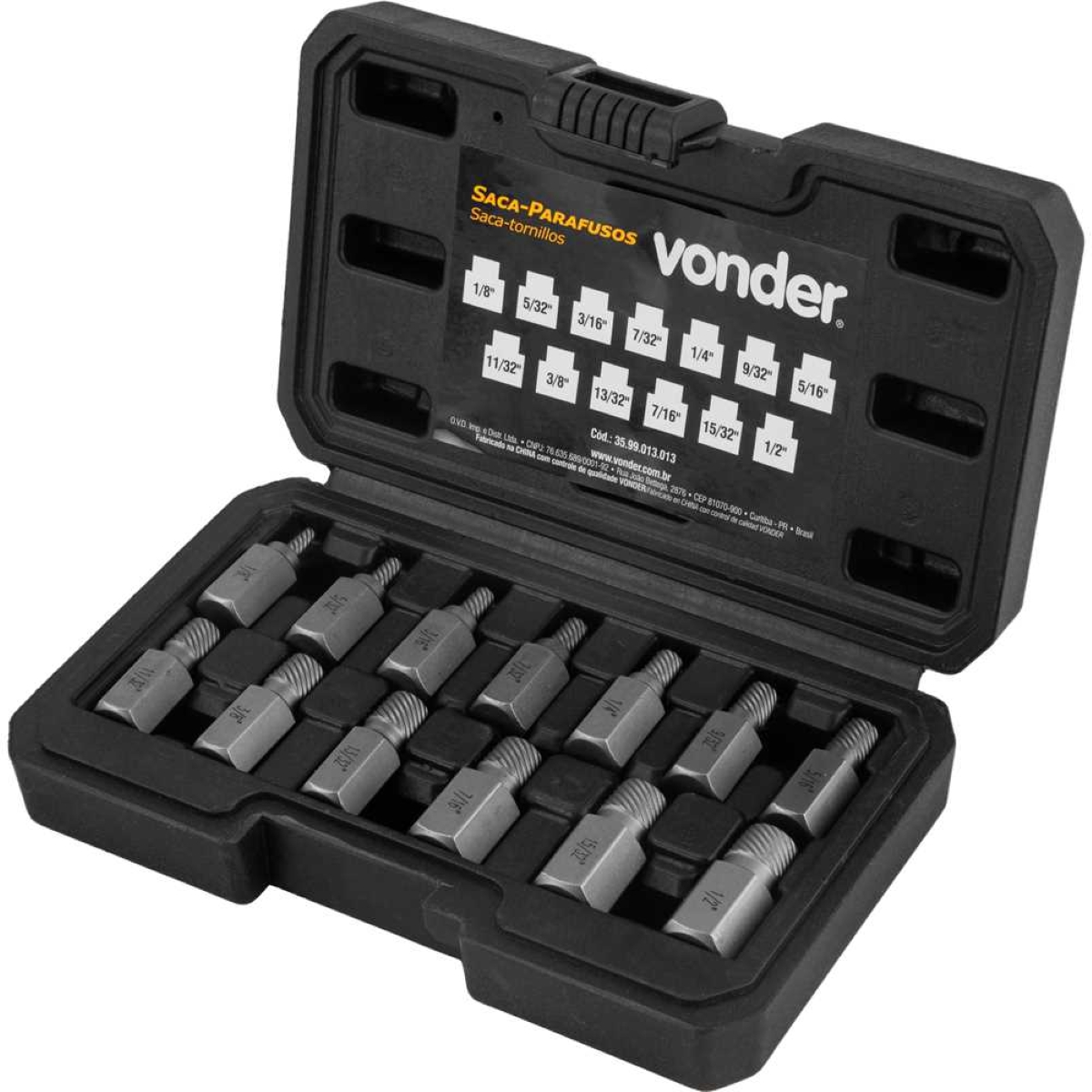 Jogo de Bits Saca Parafuso 1/8''-1/2'' 13 Peças CrMo Vonder – Solução Profissional para Parafusos Danificados Liberte-se da frustração de parafusos emperrados ou quebrados com o Jogo de Bits Saca Parafuso Vonder! Projetado para profissionais e entusiastas do faça você mesmo, este conjunto de 13 peças em aço cromo molibdênio (CrMo) oferece a resistência e a durabilidade necessárias para extrair parafusos danificados de forma eficiente e segura. Com uma variedade de tamanhos, de 1/8'' a 1/2'', este jogo é versátil e se adapta a diversas aplicações, desde reparos em máquinas até projetos de manutenção em casa. O estojo plástico incluso não apenas protege as peças, mas também garante organização e fácil transporte. A gravação a laser das medidas em cada bit assegura identificação rápida e precisa, otimizando seu tempo e trabalho. Invista em qualidade e tenha a certeza de um resultado impecável em cada remoção de parafuso. Especificações Material do saca parafusos: Aço cromo molibdênio Número de peças: 13 peças Massa aproximada (peso): 0,620 kg Encaixes: 10 peças de 1/2'' (1/8'', 5/32'', 3/16'', 1/4'', 7/32'', 9/32'', 5/16'', 11/32'', 3/8'' e 13/32'') e 3 peças de 5/8'' (7/16'', 15/32'' e 1/2'') Itens Inclusos 1 Jogo de saca parafusos composto por um estojo plástico com 13 peças Perguntas Frequentes (FAQ) Pergunta: Qual o material do jogo de bits?Resposta: O jogo de bits é fabricado em aço cromo molibdênio (CrMo), garantindo alta resistência e durabilidade. Pergunta: Este jogo serve para quais tipos de parafusos?Resposta: Este jogo é ideal para remover parafusos quebrados ou danificados, com uma ampla gama de tamanhos de 1/8'' a 1/2''. Pergunta: Qual a garantia do produto?Resposta: Garantia legal: 90 dias.